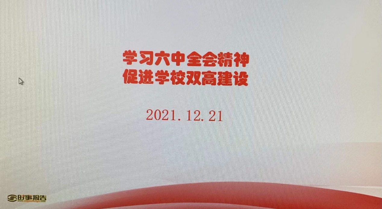 為迅速掀起學習貫徹黨的十九屆六中全會精神、凝聚奮進力量的熱潮,2021年12月21日,黨委常委、副校長周燕在匠心樓第四會議室作了題為《學習六中全會精神,促進學校雙高建設》的六中全會精神專題宣講報告。學校黨史學習教育第三指導組王芳同志、圖書聯合黨總支全體教職工參加了此次宣講報告會。報告會由總支書記朱元忠主持。