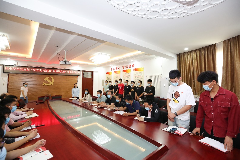 為持續深入開展好黨史學習教育,切實在師生中落實黨史知識“學起來”、“唱起來”、“講起來”、“做起來”,機電學生黨支部于2021年6月2日下午在博學樓212會議室召開了一次別開生面的“學黨史唱紅歌永遠跟黨走”主題黨日活動。校長安江英同志、機電學院黨總支書記王懷群同志、學生黨支部全體師生黨員參加了此次活動,活動由支部書記蘭健同志主持。