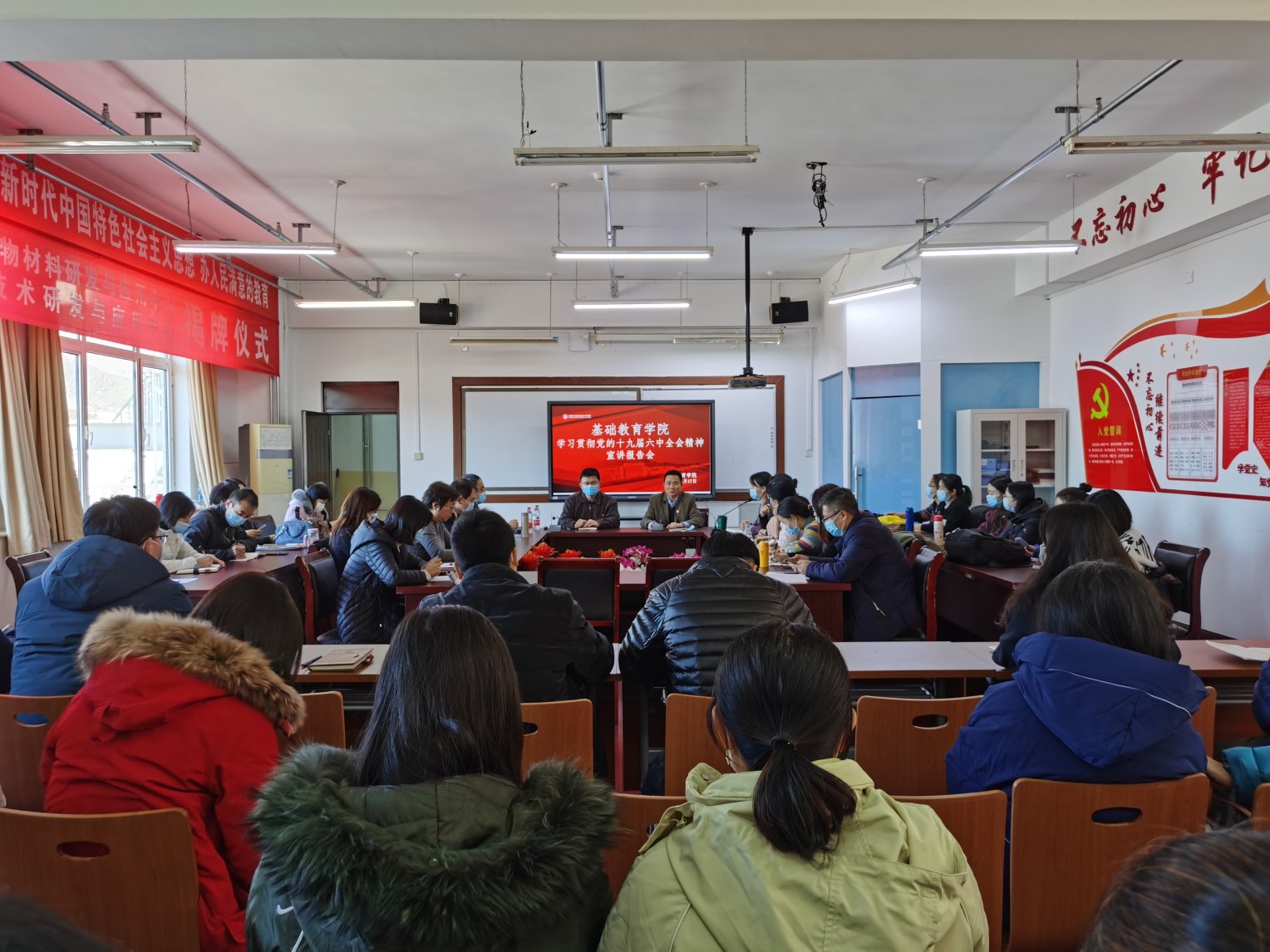 按照學校黨委關于學習黨的十九屆六中全會精神的安排,12月17日中午13:00,校紀委書記張萌萌以《從決議中學習貫徹黨的十九屆六中全會精神,永遠跟黨走,做信仰堅定的時代人民教師》為題,在匠心樓716會議室為基礎教育學院全體教師開展了一堂內容豐富的專題黨課。基礎教育學院黨總支書記沈杰、院長任鳳國、副書記張煒、副院長孫川以及全體教職工參加了講座。會議由沈杰主持。
