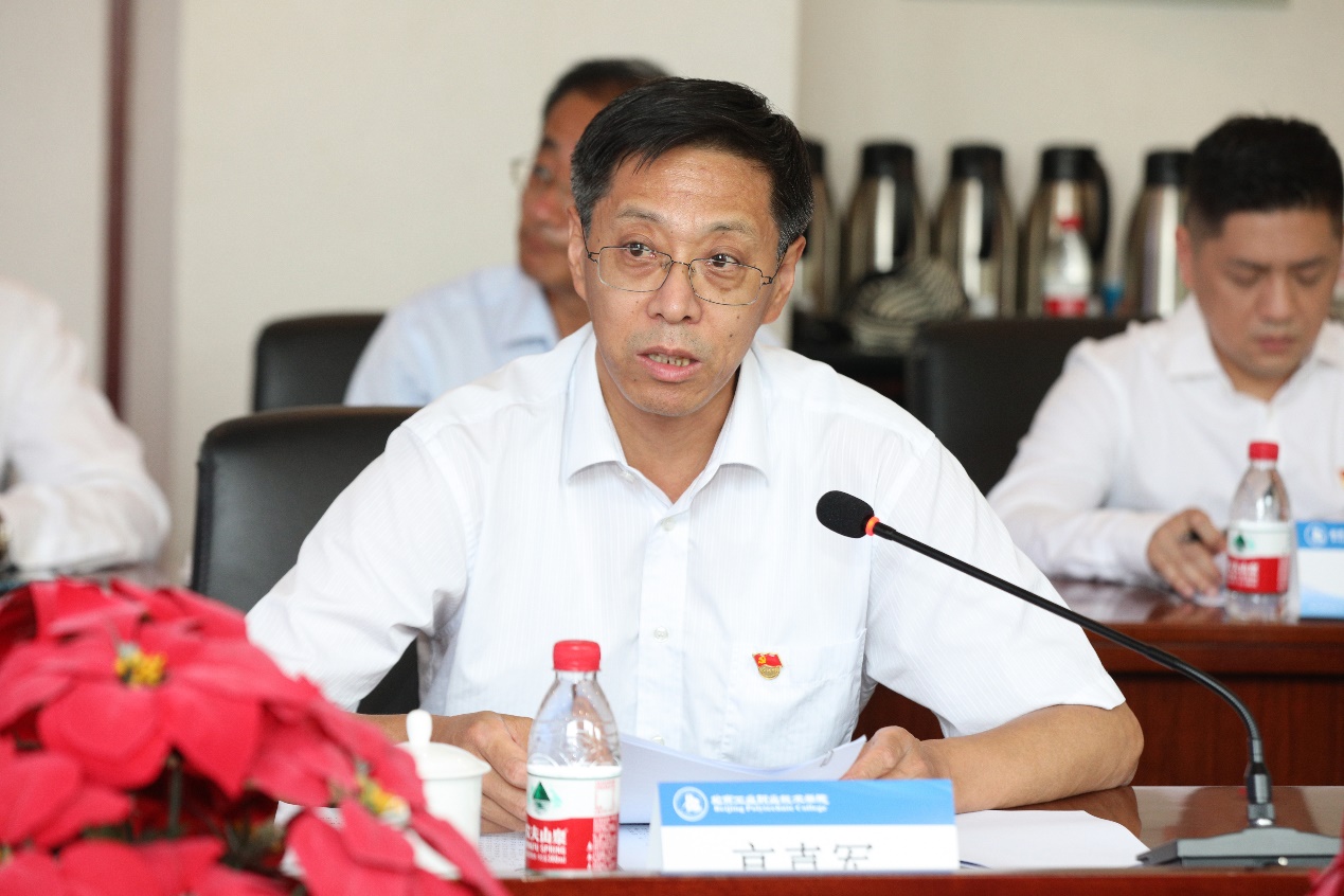 高書記指出,學校以“三全”為抓手,促進黨史學習教育入腦入心。一是堅持“全過程”領導,學習教育有力度。建立“學校黨委領導統籌、責任部門協調配合、黨團組織扎實落實”的黨史學習教育工作機制,層層壓緊壓實責任。二是堅持“全員”參與,學習教育有廣度。以上率下,“學”起來。黨委理論學習中心組率先垂范,發揮引領作用,處級領導干部、黨員師生,青年學生群體分層分類推進,全覆蓋加強學習;突出重點,“講”起來。黨委領導班子成員帶頭深入基層講專題黨課,黨組織書記和部門正職講專題黨課總計63場次,專題黨課和黨史宣講有機結合;觸及心靈,“動”起來。通過談感受、說體會,以潛移默化的方式觸動每個黨員干部、師生員工的心靈,用黨史浸潤心靈,引導其深入思考、深刻感悟中國共產黨為什么能、馬克思主義為什么行、中國特色社會主義為什么好。三是堅持“全方位”推進,黨史學習有深度。將黨史學習教育課堂搬進歷史地標,組織黨師生前往中國人民抗日戰爭紀念館、長辛店二七紀念館等革命舊址參觀學習,現場體悟革命傳統和革命精神。“誦讀紅色經典 致敬百年偉業——慶祝中國共產黨成立100周年紅色經典師生誦讀”、 “永遠跟黨走”黨史知識競賽、“唱支山歌給黨聽”快閃活動、 “穿越時空-寫給革命先烈的一封信”等沉浸式實踐,將紅色基因深入骨髓、浸入靈魂。開展“兩優一先”評選,選樹黨員先鋒榜樣,官網、官微和公眾號聯合推出黨史學習專題欄目,強化立體化宣傳,推動黨史學習教育入腦入心。