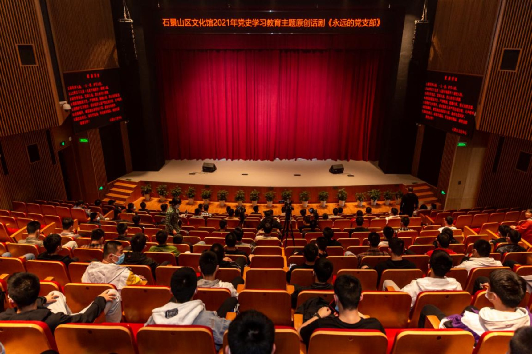 為深化黨史學習教育,3月30日晚,應石景山區文化旅游局邀請,我校團委書記鄭興、團委副書記趙萌組織師生代表80人赴石景山區文化中心觀看原創話劇《永遠的黨支部》。