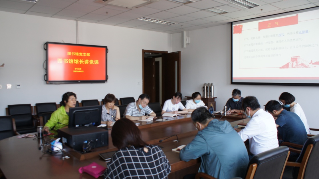 李月清館長黨課的主題是“正氣、骨氣、勇氣”。她以“學史明理、學史增信、學史崇德、學史力行”為主線,結合工作實際從三個方面闡述了何謂正氣、骨氣、勇氣,如何成為有正氣、骨氣、勇氣的共產黨員,工作中應如何運用和展現等進行了詳盡的講解。