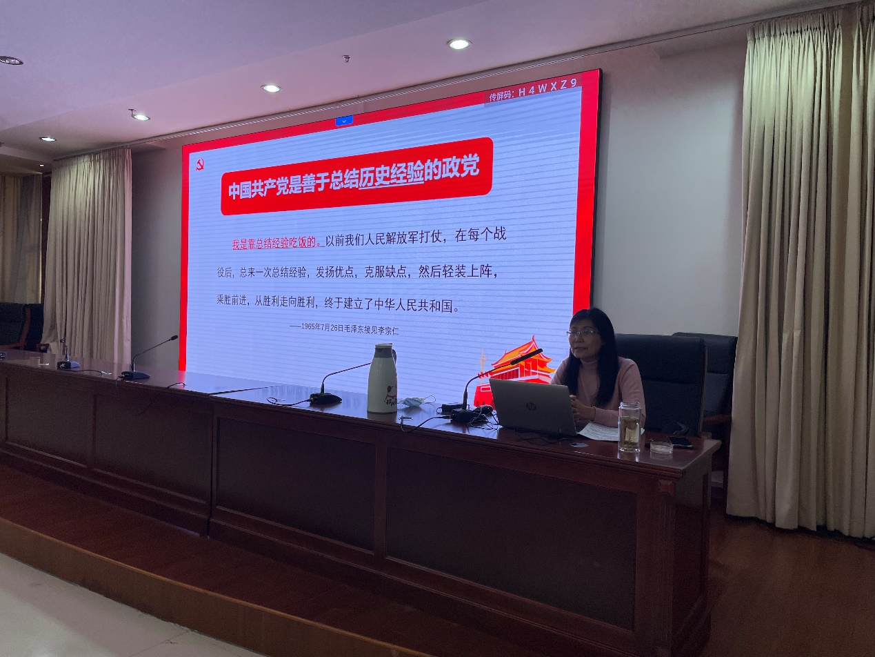 宣講會(huì)上,孫志方老師首先以“中國(guó)共產(chǎn)黨是善于總結(jié)歷史的政黨”和“解讀三個(gè)歷史決議”為導(dǎo)入,圍繞“一個(gè)根本問(wèn)題”、“兩個(gè)確立”、“三次飛躍”、“四大成就”、“五個(gè)意義”和“十大經(jīng)驗(yàn)”等六個(gè)部分為同學(xué)們深入講述了“過(guò)去我們黨為什么能夠成功、未來(lái)我們黨怎樣才能繼續(xù)成功”的根本原因和目的意義。同時(shí),孫志方老師還從“《決議》的時(shí)代背景”、“堅(jiān)持唯物史觀和正確黨史觀”、 “一個(gè)主題與四個(gè)時(shí)期”、“第三次飛躍”與“兩個(gè)確立”和“歷史意義和基本經(jīng)驗(yàn)”五個(gè)方面深入解讀了黨的十九屆六中全會(huì)的豐富內(nèi)容。