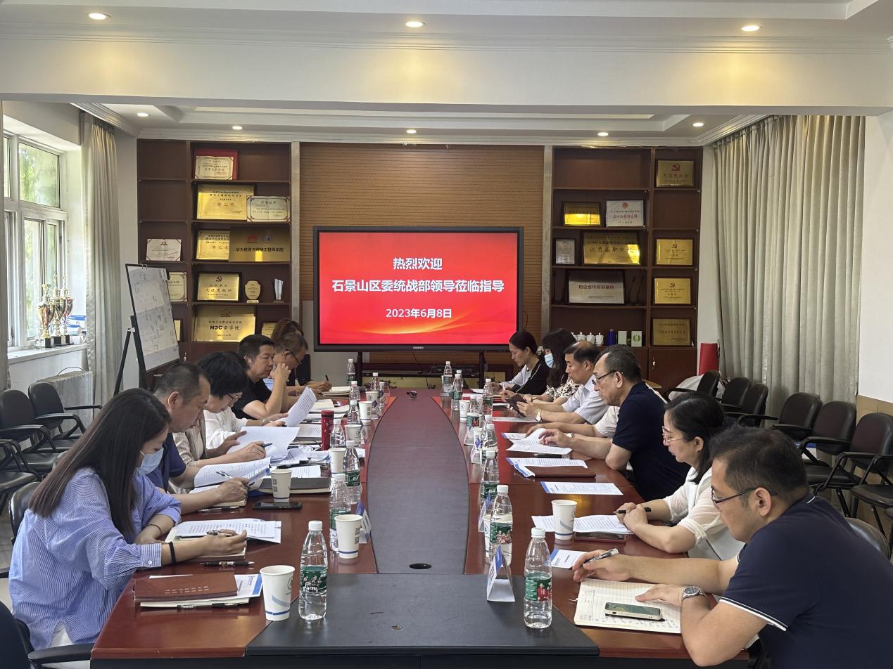 2023年6月8日上午,石景山區(qū)委常委、統(tǒng)戰(zhàn)部部長陳婷婷、民盟區(qū)工委主委、區(qū)政協(xié)副主席、區(qū)園林綠化局局長毛軒、區(qū)委統(tǒng)戰(zhàn)部分管日常工作的副部長高竹、區(qū)委統(tǒng)戰(zhàn)部副部長林棟、區(qū)知聯(lián)會副會長、區(qū)國資委副主任紀(jì)愛華、區(qū)委統(tǒng)戰(zhàn)部四級調(diào)研員王佳等一行9人來我校調(diào)研。學(xué)校黨委副書記、院長安江英,黨委副書記魏曉東相關(guān)職能部門負(fù)責(zé)人及民主黨派、無黨派人士和僑屆代表等參加座談交流。