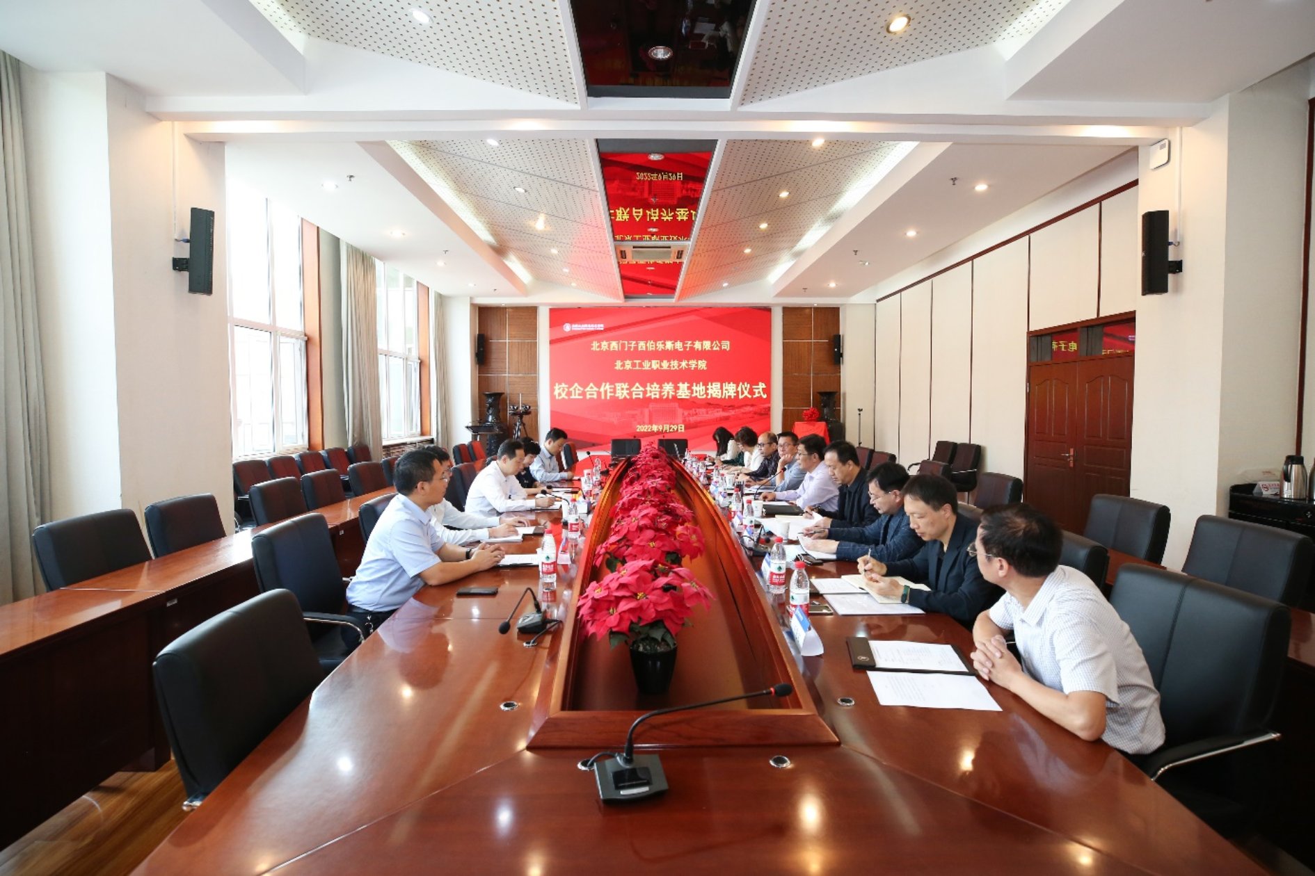 2022年9月29日,我校和北京西門子西伯樂斯電子有限公司校企合作聯(lián)合培養(yǎng)基地揭牌儀式成功舉行,在校企雙方傳統(tǒng)合作基礎(chǔ)上,進(jìn)一步拉開了我校與北京市智能設(shè)備高精尖產(chǎn)業(yè)深度產(chǎn)教融合、共育人才的新篇章。