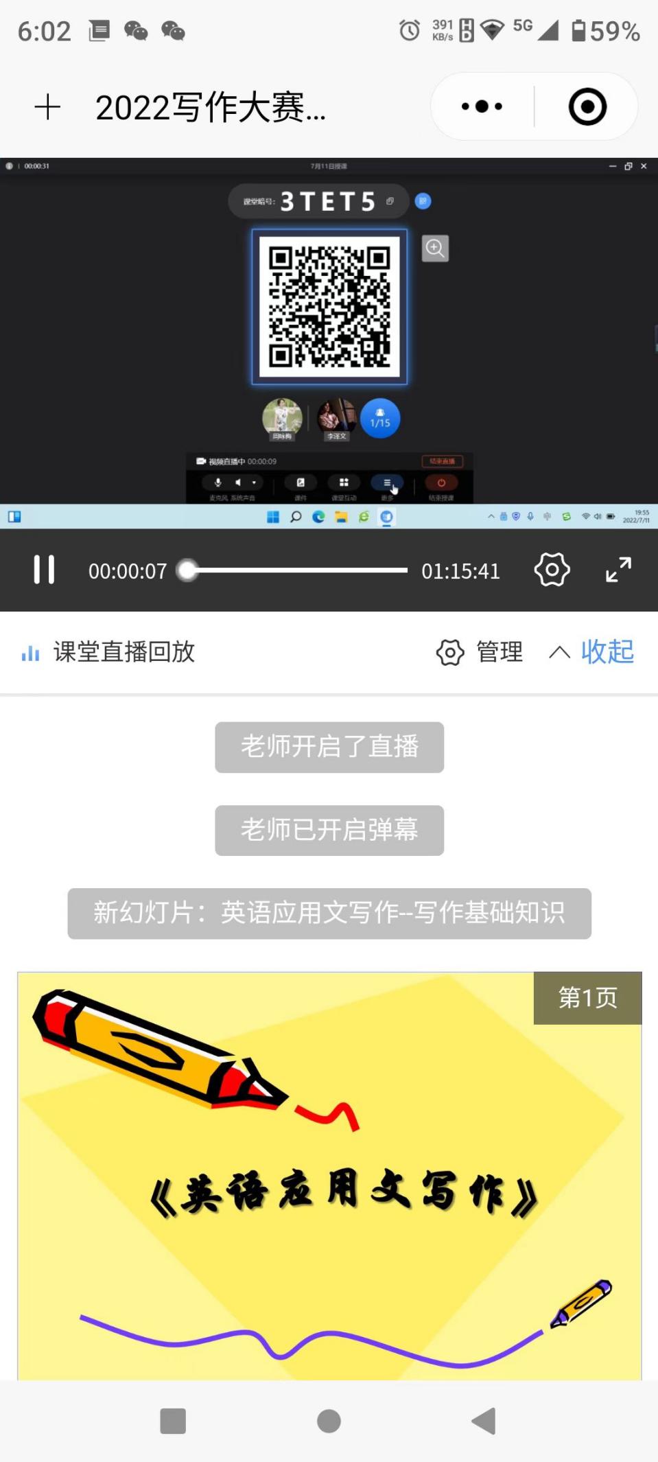 指導教師利用課余時間在雨課堂進行直播授課