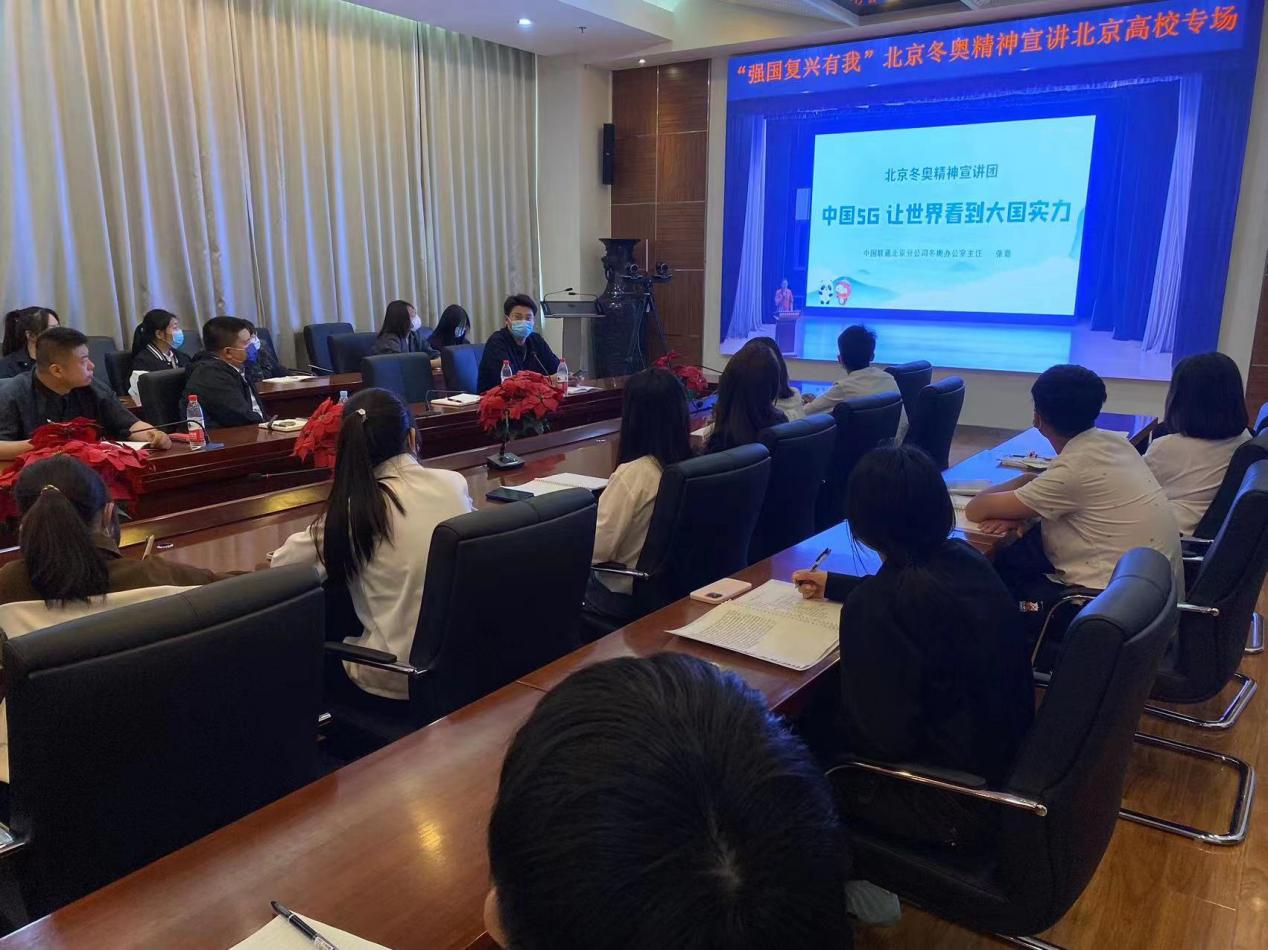 為扎實做好學生日常思想政治教育,推進實施新生引航工程,以實際行動迎接黨的二十大勝利召開。北京市教育工作委員會于9月29日下午2:30,舉行“強國復興有我”——北京冬奧精神宣講團北京高校專場宣講活動,講述青春故事,弘揚北京冬奧精神。活動在北京航空航天大學設主會場,我校于匠心樓第四會議室設分會場,校團委組織22級新生、學生干部和校冬奧宣講團代表共同觀看了本場活動。
