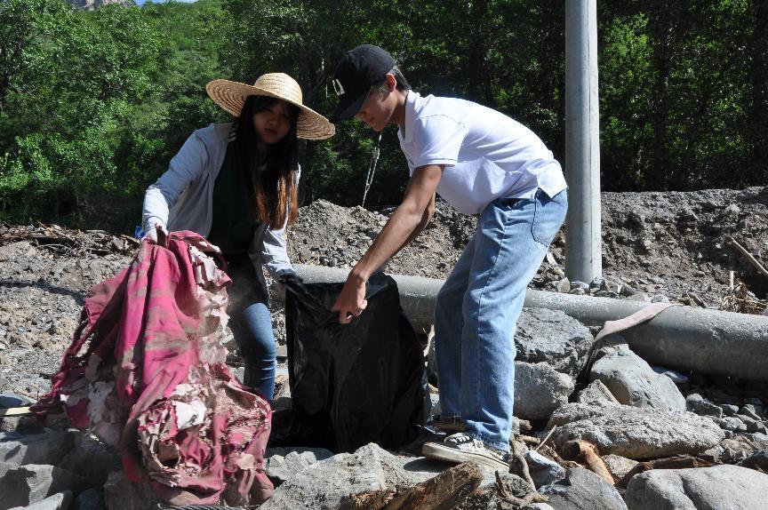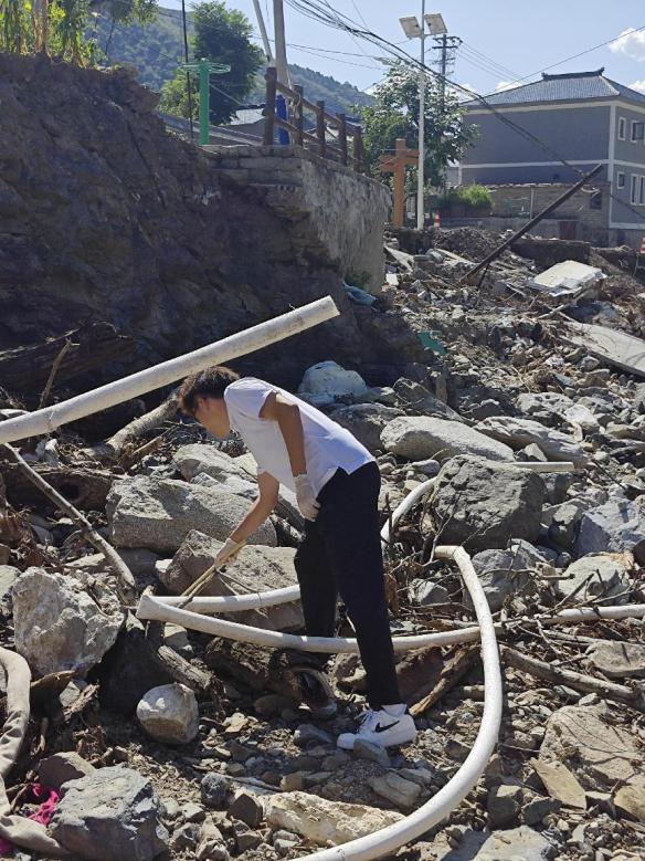 實踐團成員親身經歷到洪水災害過后的鄉村中,十分痛心,并主動請纓,決心為西達么村做出力所能及的志愿服務。會后,高歌老師帶領實踐團成員為西達么村清除雜草,清理護欄淤泥。