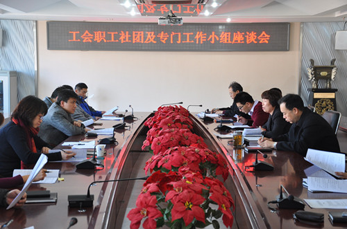 我校教職工社團及工會專門工作小組座談會于2015年1月6日在學校綜合樓第一會議室召開,學校各分會主席、工會各專門工作小組組長及擬建教職工社團的召集人參加了本次會議。