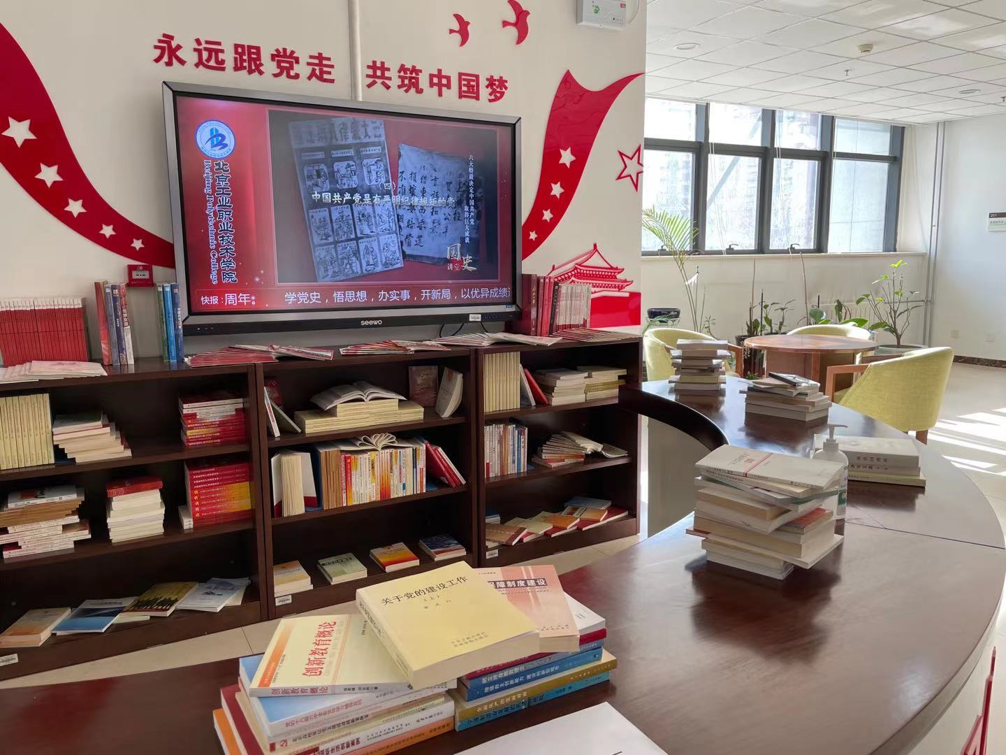 此次展覽,拉開了圖書館建黨100周年系列活動的序幕。圖書館內的綜合信息屏滾動播放“國史講堂”視頻內容,二層思政專區(qū)也擺放有相關主題圖書,歡迎全校師生來圖書館參觀、借閱學習。