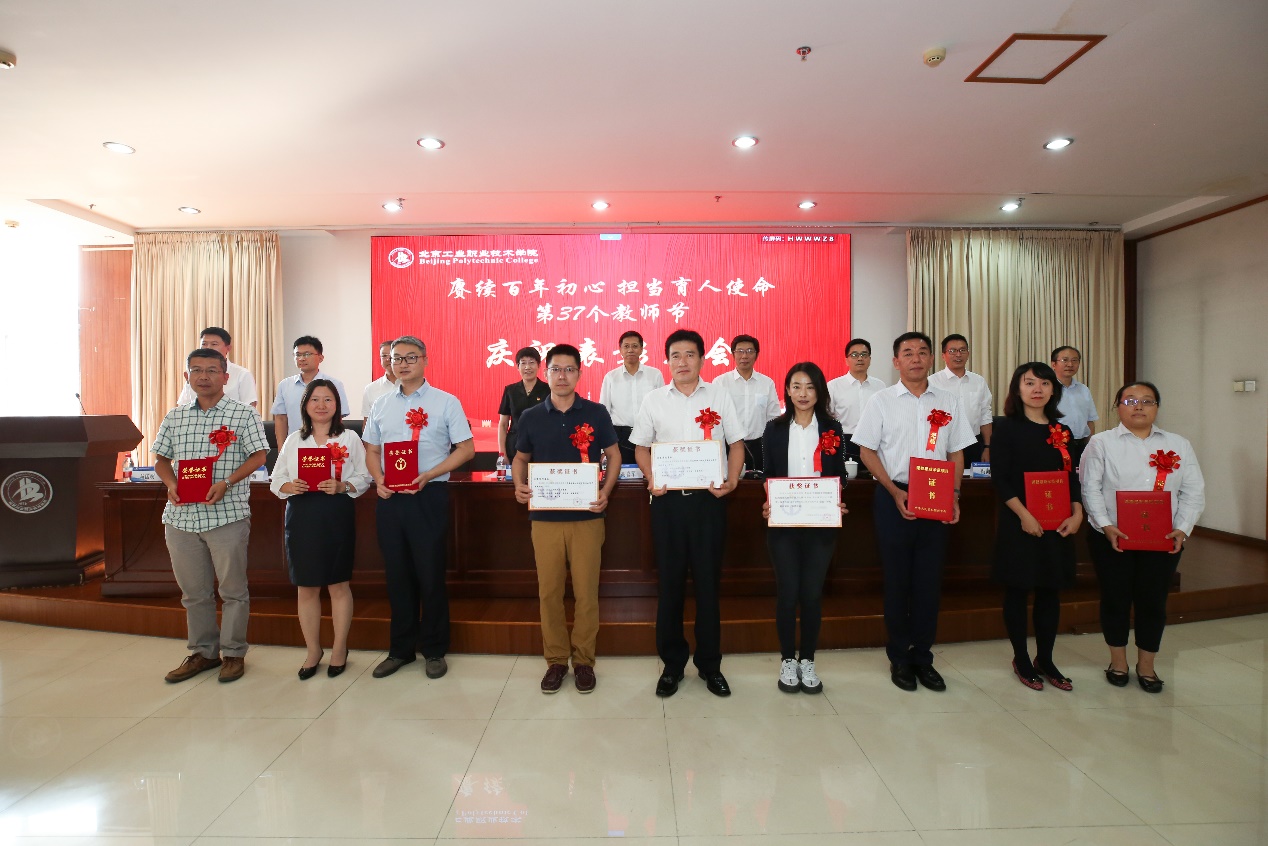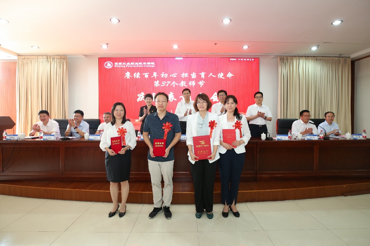 9月10日下午,我校在匠心樓3層報告廳隆重舉行第37個教師節(jié)慶祝表彰大會。今年教師節(jié)的主題是“賡續(xù)百年初心 擔(dān)當(dāng)育人使命”。黨委書記高喜軍同志,黨委副書記、校長安江英同志,黨委常委、副校長周燕同志,黨委常委、副校長劉蘭明同志,黨委常委、副校長、工會主席王希忠同志,黨委常委、紀(jì)委書記張萌萌同志,黨委常委、校長助理謝光輝同志,校長助理馬國明同志等出席了大會。參加本次大會的還有中層干部代表、教職工代表及新入職教職工。會議由黨委常委、副校長馮海明同志主持。