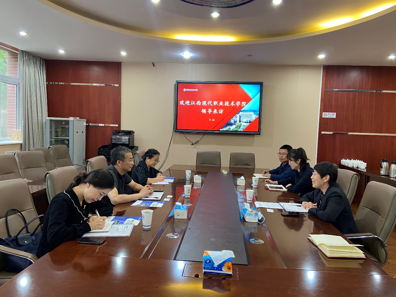 9月26日上午,江西現(xiàn)代職業(yè)技術(shù)學(xué)院副院長朱建華、國際交流中心副主任桂樹紅等一行3人來我校調(diào)研交流。周燕副校長在厚德樓二層會議室親切接待了來訪客人。國際處副處長孟晴、謝麗杲、孔子課堂負責人占文鋒等相關(guān)人員一同出席了此次會議。