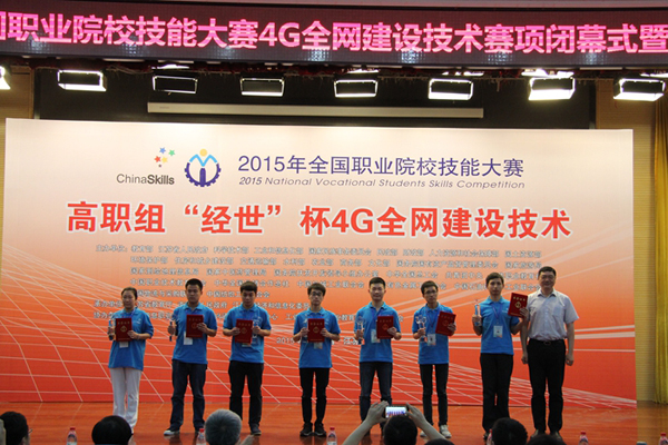 4G賽項一等獎“三連冠”。2013年通信專業(yè)賽隊獲常州信息職業(yè)技術學院承辦的全國職業(yè)院校“LTE組網(wǎng)與維護”賽項一等獎;2014年獲天津輕工職業(yè)技術學院承辦的全國職業(yè)院校”基站建設維護及數(shù)據(jù)網(wǎng)組建”賽項;2015年獲南京信息職業(yè)技術學院承辦的全國職業(yè)院校“4G全網(wǎng)建設技術”賽項一等獎。