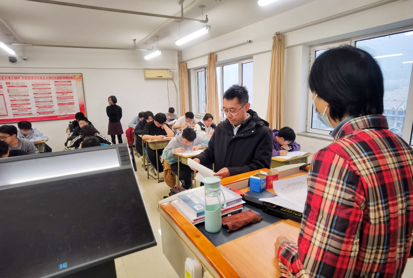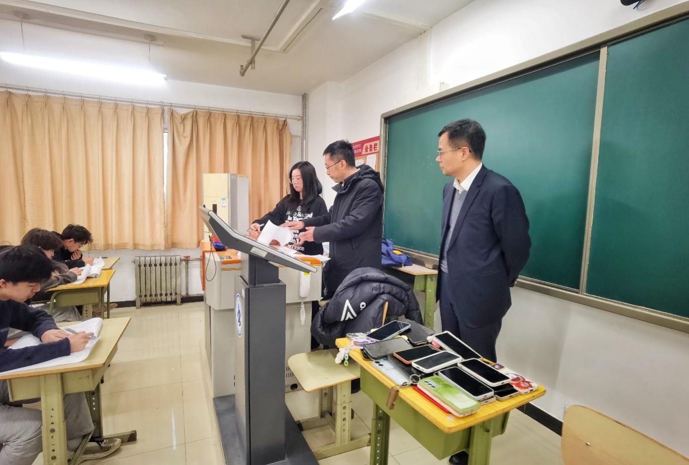 我校2023-2024學(xué)年第一學(xué)期期末考試于2024年1月13日、14日進行,學(xué)校黨委副書記、院長柳長安,黨委常委、副院長史運濤到考場現(xiàn)場巡視,強調(diào)要高度重視考場紀律,所有監(jiān)考教師必須嚴格按照要求規(guī)范工作,并就發(fā)現(xiàn)的不足之處進行了指導(dǎo)。