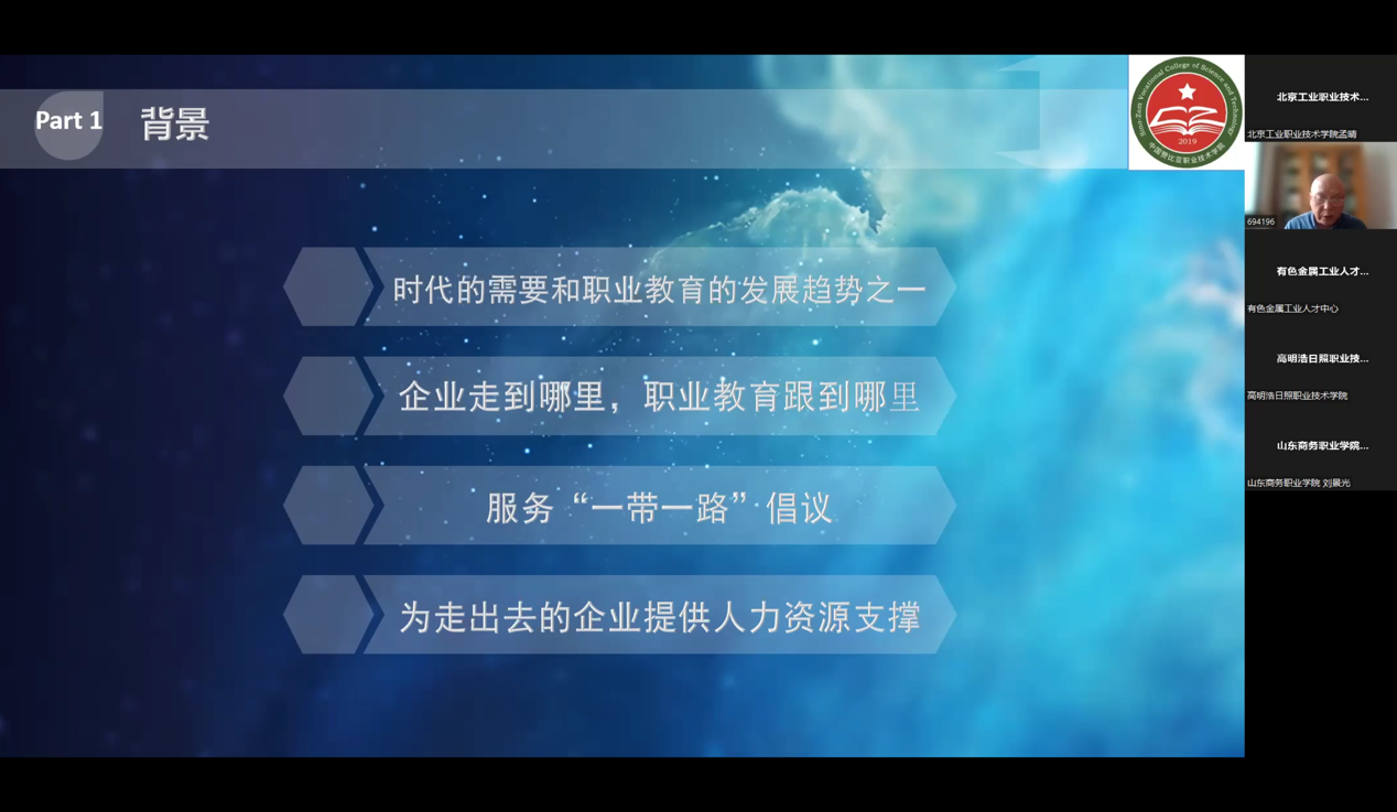 為深入貫徹黨的二十大精神,落實中共中央辦公廳、國務(wù)院辦公廳印發(fā)的《關(guān)于深化現(xiàn)代職業(yè)教育體系建設(shè)改革的意見》,加快構(gòu)建央地互動、區(qū)域聯(lián)動、政行企校協(xié)同的職業(yè)教育高質(zhì)量發(fā)展新機制,有序有效推進(jìn)現(xiàn)代職業(yè)教育體系建設(shè)改革,培養(yǎng)一批適應(yīng)國際化教學(xué)需要的職教師資,培養(yǎng)一批服務(wù)中國企業(yè)海外發(fā)展的本土化技術(shù)技能人才,整體提升職業(yè)學(xué)校國際化水平。近日,北京工業(yè)職業(yè)技術(shù)學(xué)院舉辦了“中文+職業(yè)技能”教育實踐與研究基地“中文工坊”項目師資及管理人員培訓(xùn)。本次培訓(xùn)由教育部中外語言交流合作中心主辦,北京工業(yè)職業(yè)技術(shù)學(xué)院承辦,有色金屬工業(yè)人才中心協(xié)辦。