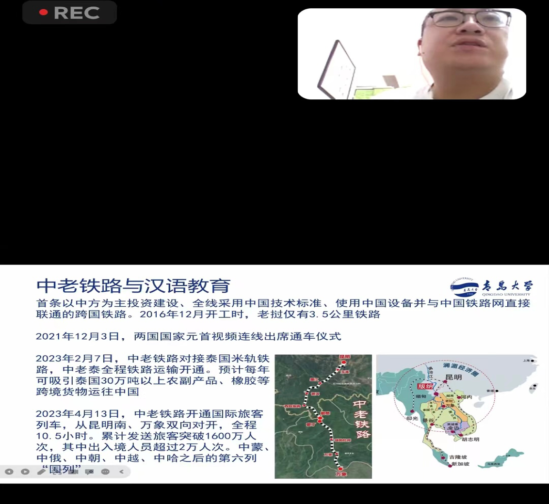 中國人民大學(xué)國際文化交流學(xué)院的潘晨靖副教授則圍繞“一帶一路”視野下的國際中文教育結(jié)合了目前最新的相關(guān)研究和論文向參加培訓(xùn)的學(xué)員們介紹了目前“一帶一路”下的國際中文發(fā)展情況、漢語國際教育推廣體系以及國際中文教育所面臨的問題。并且針對職業(yè)院校目前開展的“中文+職業(yè)技能”項目提出了對教育模式適應(yīng)性、教育體系建設(shè)、師資隊伍建設(shè)和加強職業(yè)中文標(biāo)準(zhǔn)引領(lǐng)等方面提出了改進(jìn)建議。