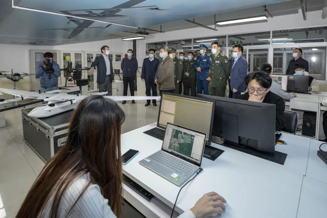 座談會前,參會軍地領導一同參觀了學校“強軍育才工程”培訓基地一隅——無人機實訓基地,聽取了學校開展的“冬奧會”、“精準扶貧”等技術服務項目和部隊官兵無人機操控培訓、職業資格證書考培情況匯報。