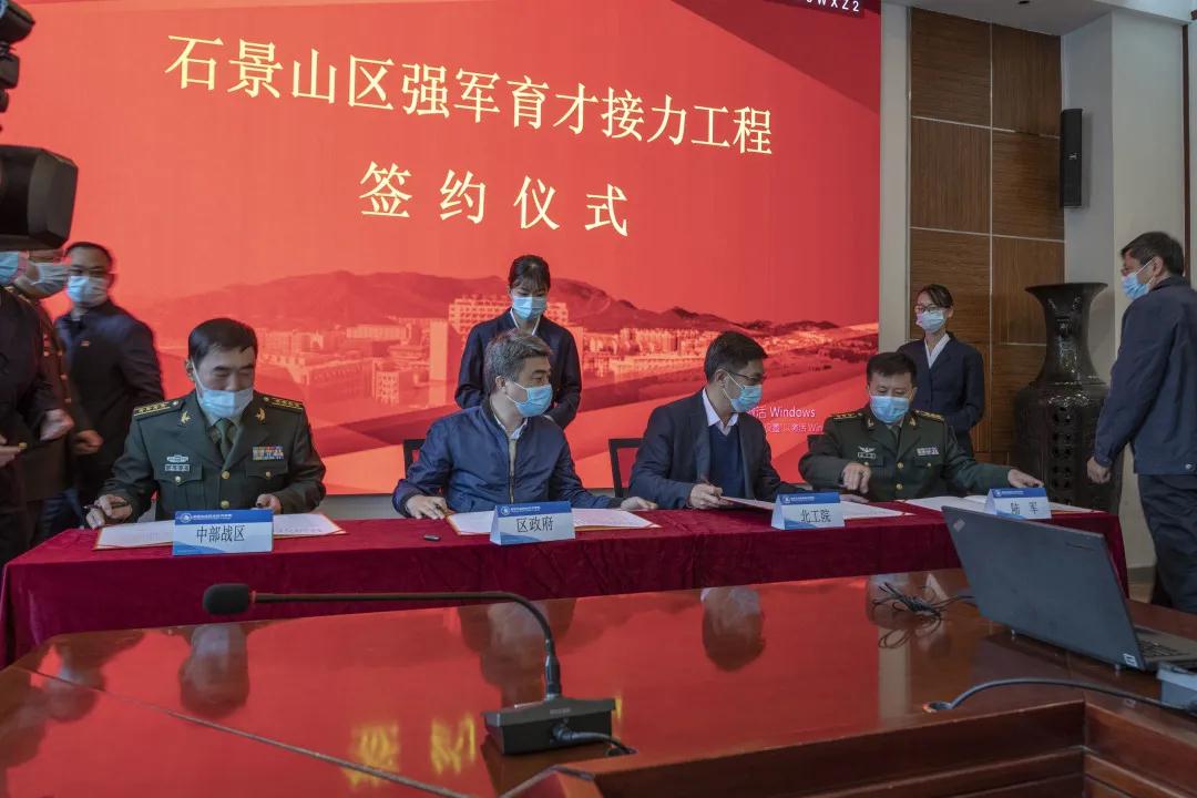 隨后舉行的“強軍育才接力工程”簽約儀式上,安江英校長代表學校與石景山區政府、中部戰區、陸軍簽署了《強軍育才接力工程協議書》。