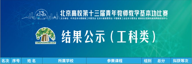 北京高校第十三屆青教賽和第二屆青管賽結果正式發布。北京高校第十三屆青教賽共有來自北京70余所高校312名教師參加,我校建筑與測繪工程學院李光子老師獲工科B組一等獎,體育部賈一老師獲文科B組三等獎;北京高校第二屆青管賽共有57所高校171名選手參加,我校教師史偉、賈宸、吳紫豪獲得B組三等獎。我校也成為北京高校第十三屆青教賽中唯一獲得工科B組一等獎的高職院校。