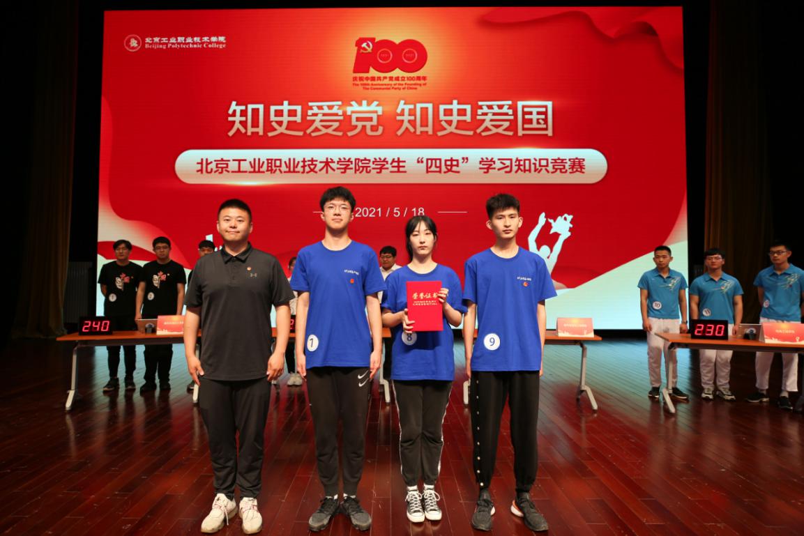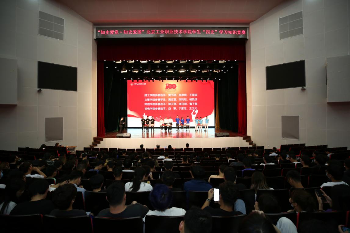 為貫徹落實中央和北京市委、學校黨委關于黨史學習教育部署,使廣大青年學生更加全面、深入地學習黨的光輝歷史,深刻認識黨的豐功偉績,進一步堅定聽黨話跟黨走的決心,在學習領悟中堅定理想信念,在奮發有為中踐行初心使命,厚植愛黨愛國愛社會主義的情感,學校黨委學生工作部和團委于5月18日下午在禮堂舉辦了“知史愛黨、知史愛國——北京工業職業技術學院學生‘四史’知識競賽”決賽。全校400余名學生代表觀看了比賽。
