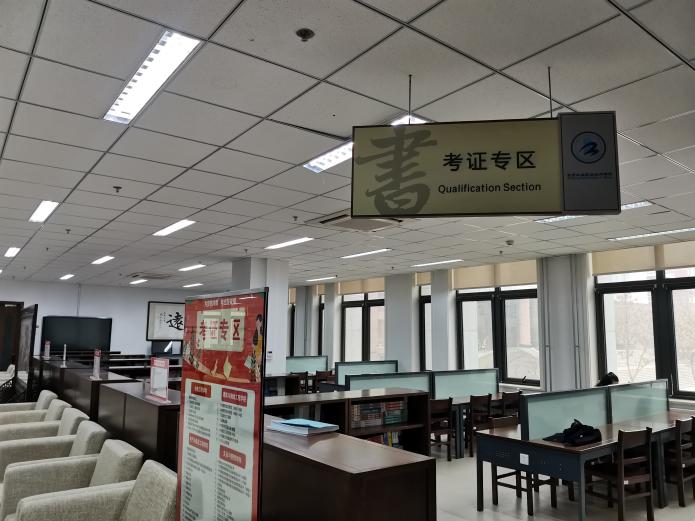 考證專區設在圖書館二層東北角,配有閱覽桌和沙發,專區分別設有機電工程學院、電氣與信息工程學院、建筑與測繪工程學院、文法和管理學院、基礎教育學院、體育部等六個相關考證的獨立區域,每個區域根據各二級學院及學部所提供的考證內容和需求,按照考證類別均配備了相應專業圖書和參考資料。