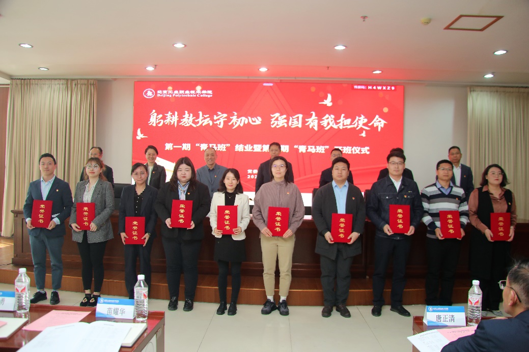 為加強教師隊伍思想政治建設,4月9日下午,北京工業職業技術學院舉行教師“青馬工程培訓班”第1期結業暨第2期開班儀式。黨委書記高喜軍出席并講授開班第一課,黨委副書記、院長柳長安出席并講話,黨委副書記魏曉東主持儀式。其他校領導、黨委職能部門、馬克思主義學院相關負責人以及各二級黨組織書記、副書記、黨建組織員、青馬班第1期和第2期學員參加。