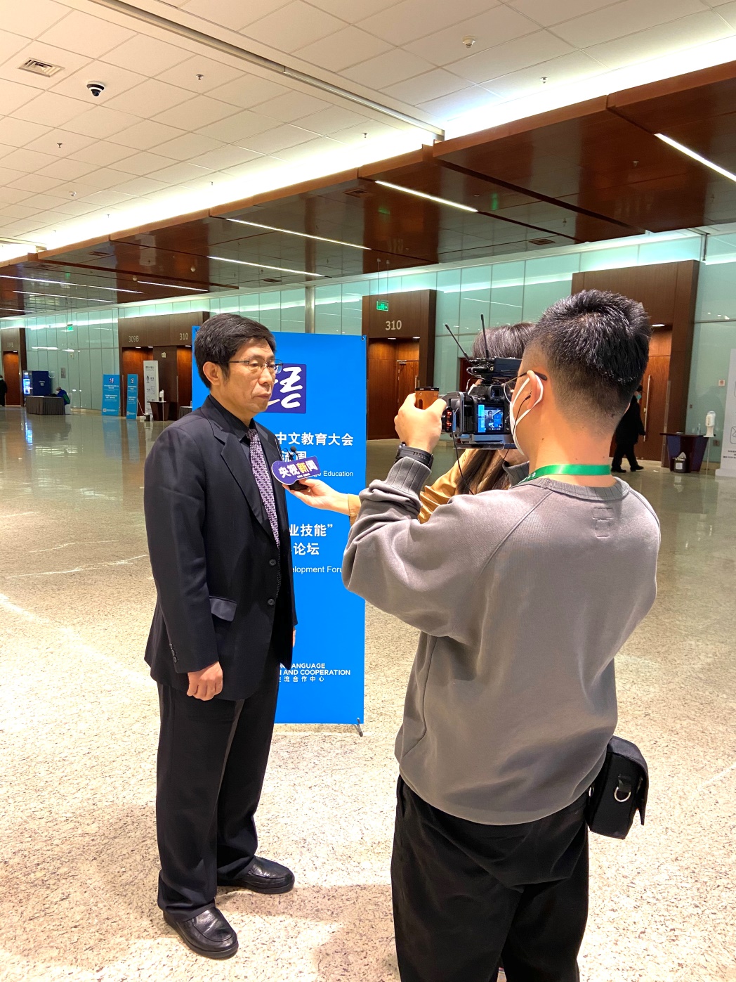 論壇期間,我校安江英院長還接受了央視新聞的采訪。安院長指出,開展“中文+職業技能”教育,有助于服務國際產能合作、助力中國企業走出去,有效解決了中資企業“人才荒”的問題。與此同時,“中文+職業技能”培訓,不僅提高了當地人的中文和技能水平,也提高了其收入水平,促進當地經濟社會發展,有助于促進中外民心相通,深受當地歡迎。