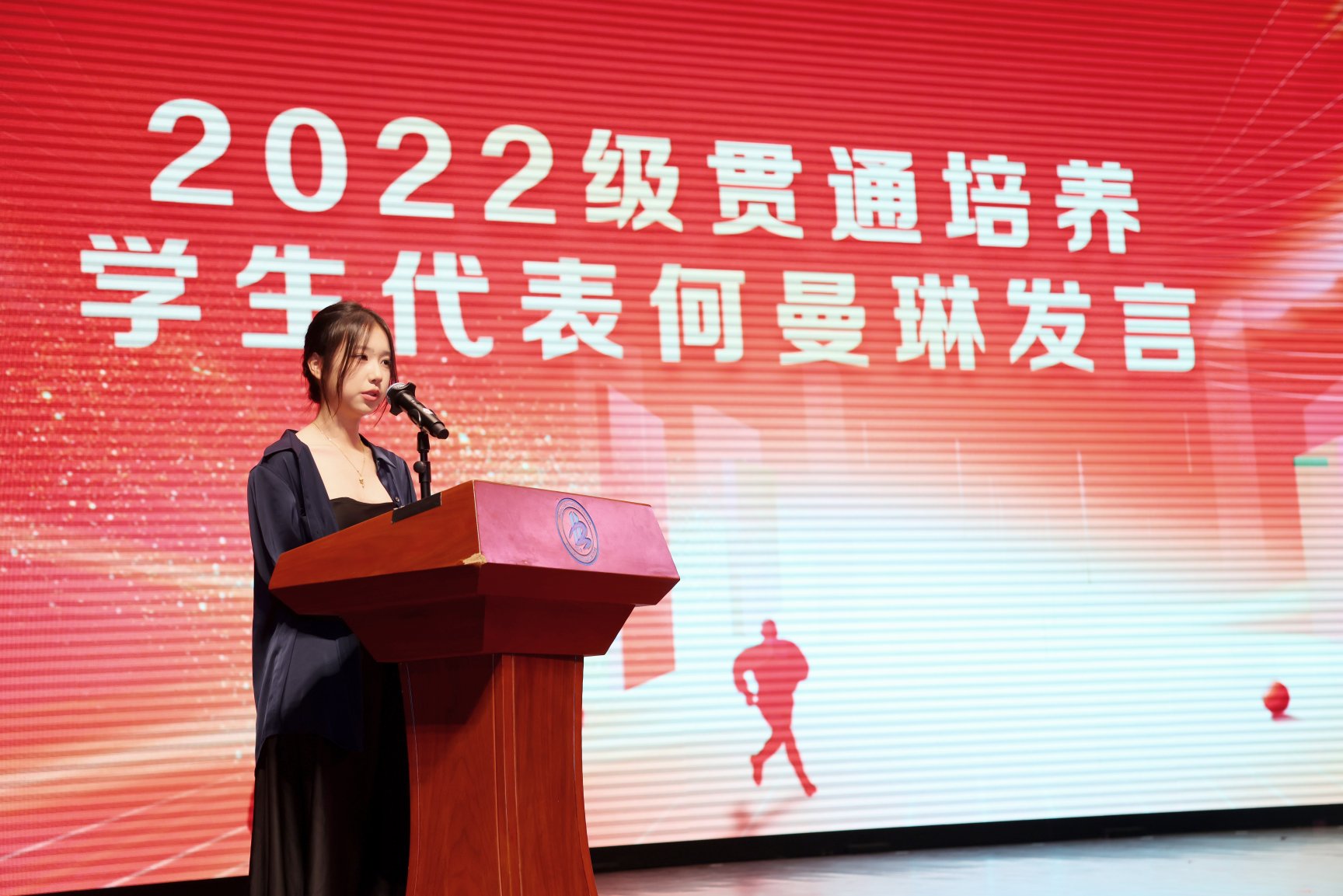隨后,舉行了2022級貫通培養優秀結業生頒獎和2022級貫通培養班主任答謝儀式。班主任王詩元代表老師發言,她為學生送上一份叮囑,一份期盼,希望同學們可以擁抱有曲線的人生。同時,放眼未來的無限性,追逐不設限的人生。