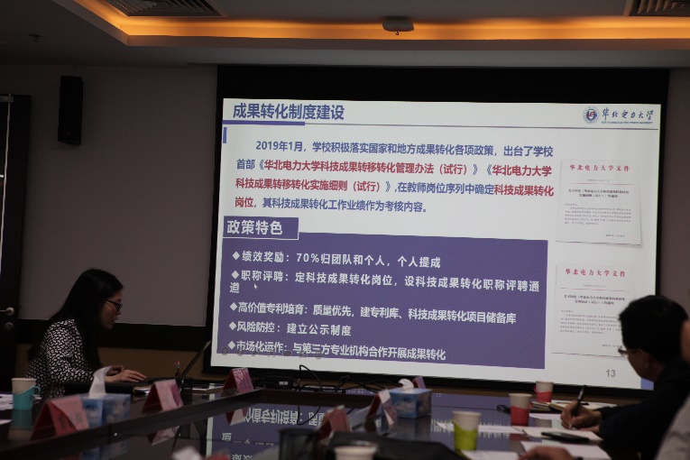 技術轉移轉化中心綜合管理辦公室主任劉曉介紹了華北電力大學成果轉化制度建設、產學研合作、知識產權、技術合同登記等方面的基本情況和取得的成果。