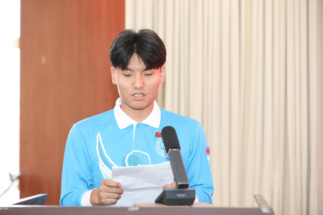 2025年暑期社會(huì)實(shí)踐團(tuán)學(xué)生代表法律事務(wù)2331王向肖發(fā)言。她介紹團(tuán)隊(duì)將赴門頭溝區(qū)妙峰山鎮(zhèn)隴駕莊村開(kāi)展實(shí)踐,針對(duì)該村作為北京唯一少數(shù)民族村的發(fā)展需求,結(jié)合法律專業(yè)特長(zhǎng),開(kāi)展法治宣傳、法律咨詢等服務(wù)。"我們將用通俗語(yǔ)言講好鄉(xiāng)村故事,用專業(yè)服務(wù)解答村民困惑,用青春力量守護(hù)鄉(xiāng)村安寧,讓法治種子在希望的田野生根發(fā)芽。"