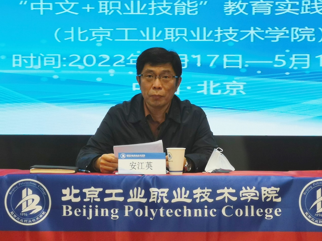 北京工業職業技術學院校長安江英在開班儀式上致辭。安院長介紹到,北京工業職業技術學院“中文+職業技能”教育實踐與研究基地是教育部中外語言交流合作中心與我校合作共建,于2021年9月3日在中國國際服務貿易交易會國際教育服務貿易論壇上正式啟動。基地作為語合中心的創新項目,主要職能是打造“中文+職業技能”北方校企協作機制、開展“中文+職業技能”各類相關培訓、開發“中文+職業技能”教學資源、開展“中文+職業技能”理論研究、區域國別研究,探索職業院校海外試點“1+X”證書制度等。此次培訓是基地重點建設任務之一,希望此次培訓能夠促進各院校和行業企業間的交流合作,共同推進國際中文教育和職業教育融合發展。