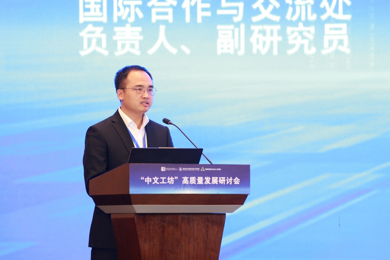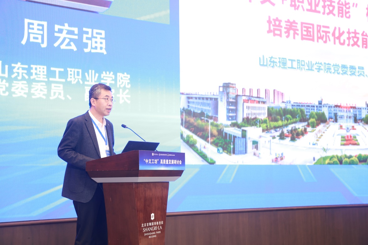 山東理工職業(yè)學(xué)院黨委委員、副院長(zhǎng)周宏強(qiáng)作題為《“中文+職業(yè)技能”模式領(lǐng)航出海培養(yǎng)國(guó)際化技能型人才》的主旨報(bào)告
