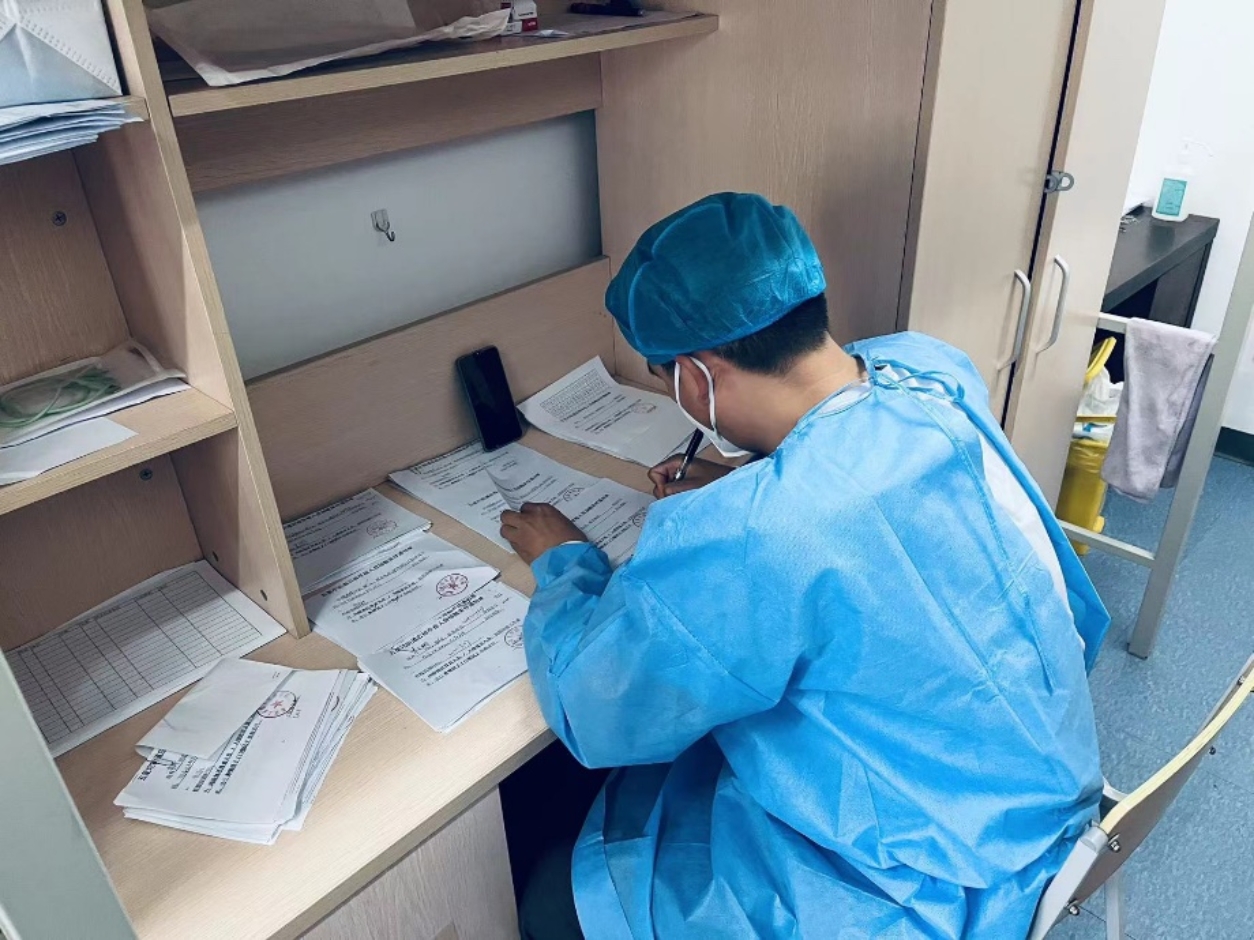 困難面前見品質,疫情當前顯擔當。醫療中心的7名工作人員在做好健康驛站服務保障工作的同時,還承擔著為全校及家屬區8000余名師生家屬提供診療和公共衛生等日常工作,開學以來,協助完成全校6萬余人次的核酸檢測和全校近2000個點位的環境采樣任務;健康驛站服務保障人員平均每天工作10小時以上,線上處理校內專項工作,線下處理健康觀察點的事宜,整理數據、匯報情況、實時對接學生需求,面對高強度的工作,他們沒有怨言,毫不懈怠,密切配合,把工作做得嚴謹又細致;他們中有人連續在一線指揮十余個小時,累得嘴唇發黑的領導,有幾天沒時間換洗衣服,也要天天堅持食品安全檢查的黨員教師。有的黨員放下家中年幼的孩子,舍小家為大家,感動著身邊的黨員群眾;健康驛站“大管家”全科醫生張雷是黨支部重點發展對象,管理健康驛站深夜加班已是常態,他用責任與擔當寫就了最生動的思想匯報。
