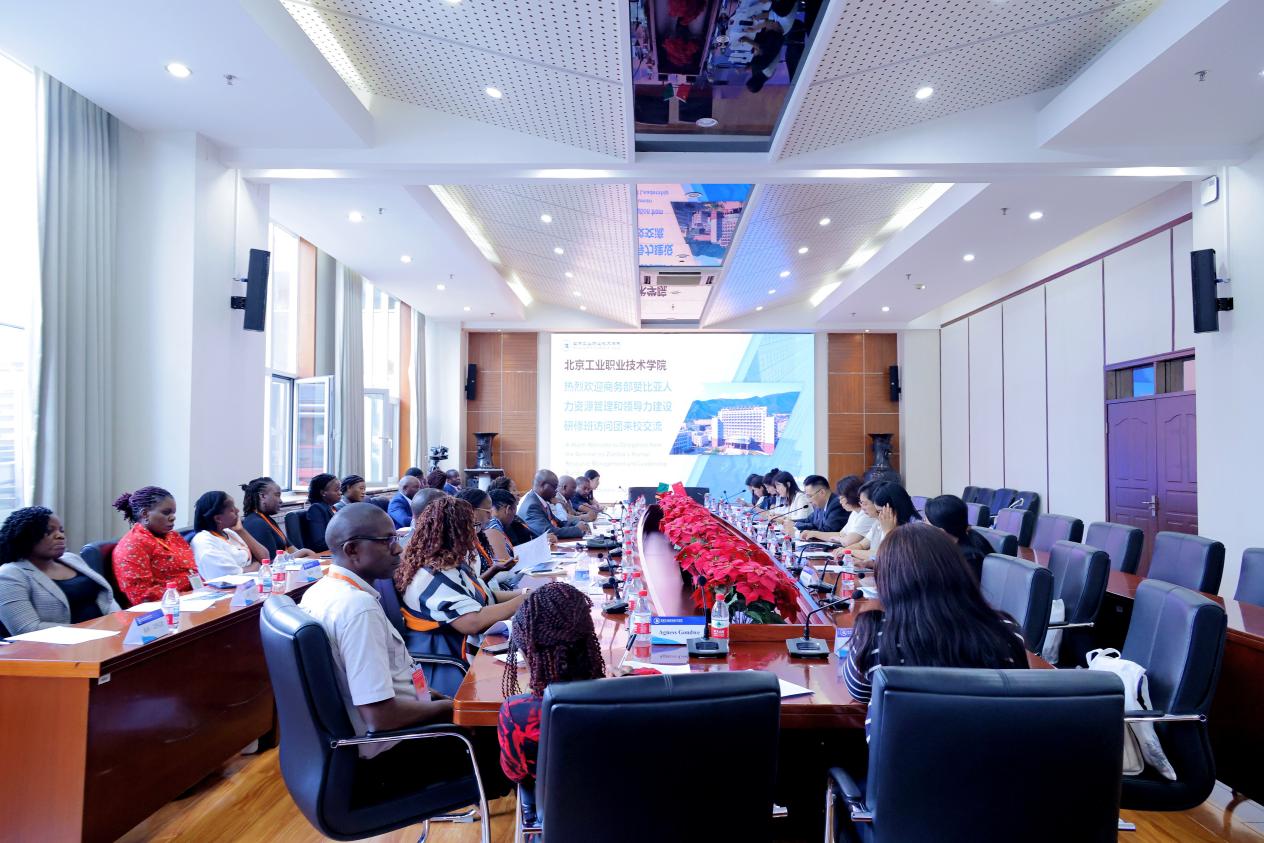 柳長(zhǎng)安代表學(xué)校向來(lái)訪客人表達(dá)真摯歡迎。柳長(zhǎng)安簡(jiǎn)要介紹學(xué)校辦學(xué)情況,并回顧了學(xué)校與贊比亞開展交流合作的歷程。自2019年北工院與中國(guó)有色礦業(yè)集團(tuán)及中國(guó)多所職業(yè)院校,在贊比亞攜手共建中國(guó)-贊比亞職業(yè)技術(shù)學(xué)院以來(lái),北工院便與贊比亞結(jié)下了深厚的合作情誼。作為中贊職院自動(dòng)化與信息技術(shù)學(xué)院的建設(shè)承擔(dān)者,學(xué)校始終積極服務(wù)“一帶一路”倡議,將中國(guó)職業(yè)教育的經(jīng)驗(yàn)與贊比亞礦業(yè)發(fā)展、產(chǎn)業(yè)升級(jí)的需求緊密結(jié)合,在人才培養(yǎng)、專業(yè)建設(shè)、師資交流等方面持續(xù)深耕,努力為贊比亞培養(yǎng)更多懂技術(shù)、能實(shí)踐的高素質(zhì)技能人才。中非合作賦予了中國(guó)職業(yè)教育歷史使命,在幫助非洲本土勞動(dòng)者掌握技能,提高年輕人就業(yè)率,改善民生,服務(wù)在非中資企業(yè)發(fā)展等方面,中國(guó)職業(yè)教育發(fā)揮著越來(lái)越重要的作用,中國(guó)職業(yè)教育已成為中國(guó)教育對(duì)非開放新的支撐點(diǎn)以及中非經(jīng)貿(mào)和人文交流合作新的載體。