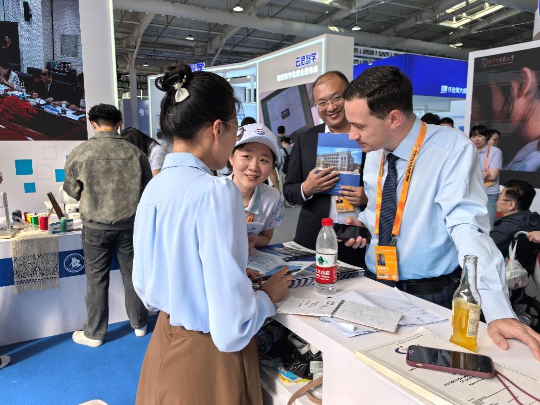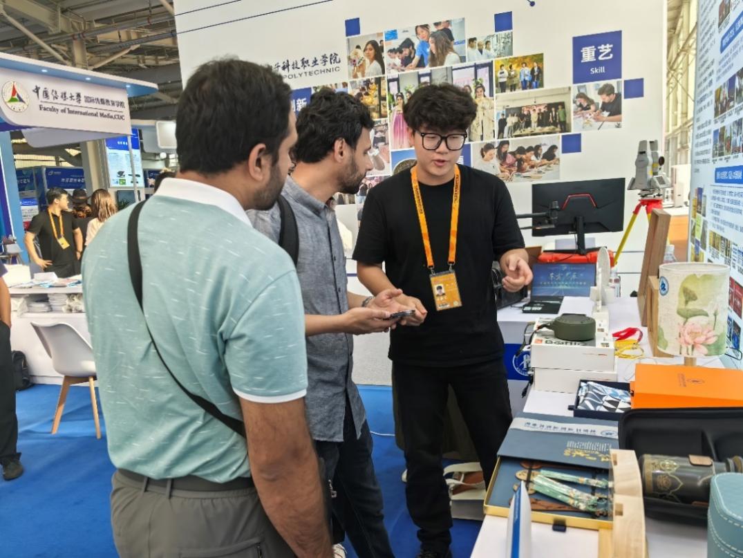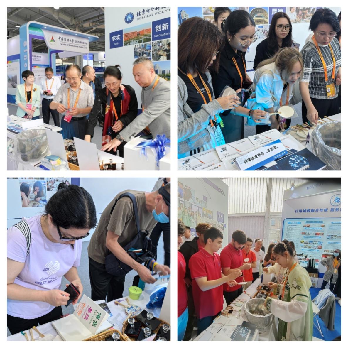 展會(huì)期間,不斷有觀展人員駐足我校展臺(tái),觀看生動(dòng)活潑的機(jī)器人展示、展示墻和宣傳視頻,體驗(yàn)我校文創(chuàng)產(chǎn)品,向講解人員詳細(xì)了解我校各方面辦學(xué)情況。會(huì)展期間共接待觀眾近千人,相關(guān)團(tuán)體百余家。大家對(duì)我校辦學(xué)取得的成績(jī)十分關(guān)注,多家團(tuán)體表達(dá)了在海外合作辦學(xué)、專業(yè)對(duì)接、留學(xué)生培養(yǎng)、職業(yè)技能培訓(xùn)等方面,希望與學(xué)校展開(kāi)合作。