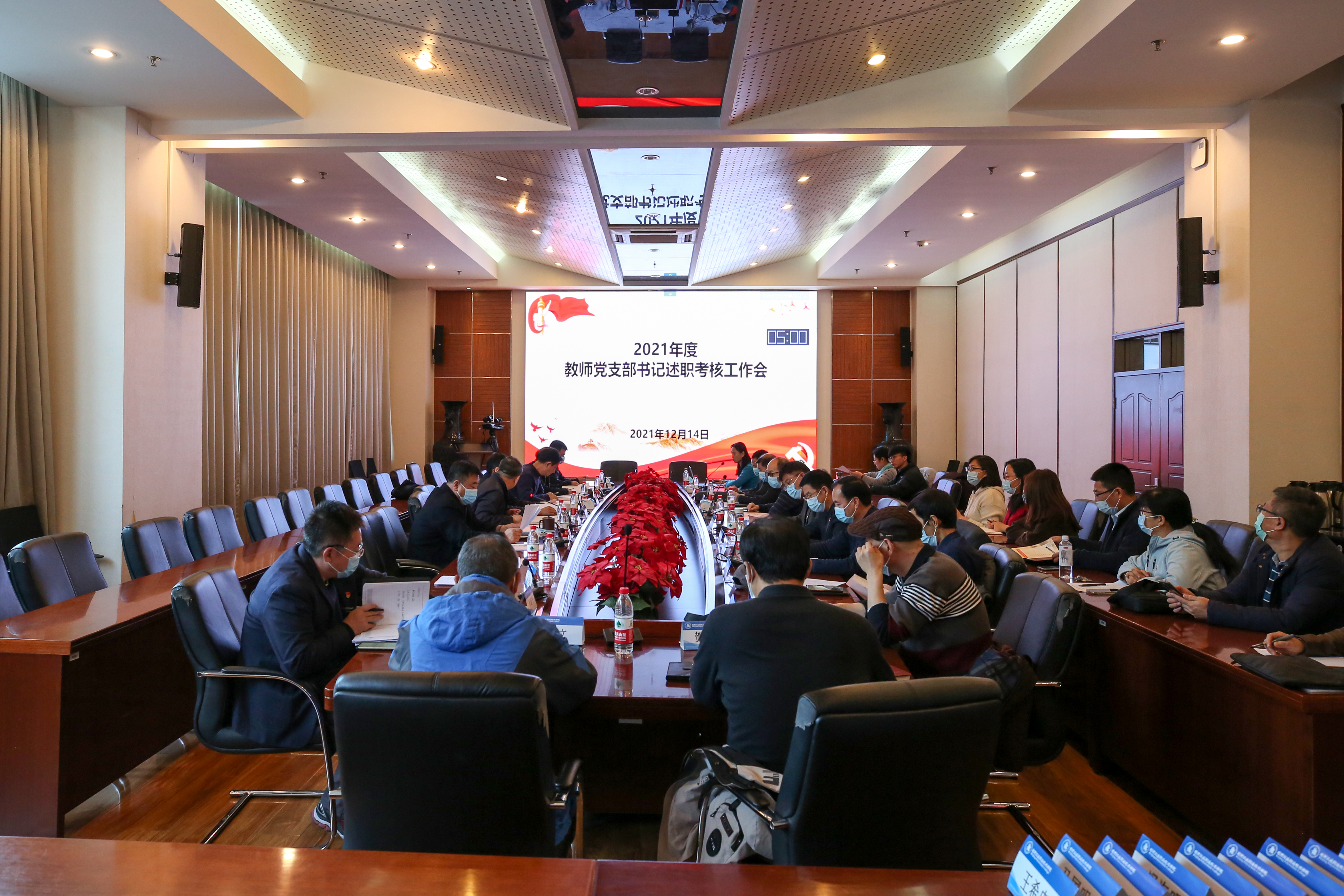 12月14日下午,我校在匠心樓第四會議室召開2021年度教師黨支部書記“雙帶頭人”考核會。校黨委書記高喜軍、黨委副書記魏曉東、相關(guān)黨委職能部門負(fù)責(zé)人、全體黨總支書記(直屬黨支部書記)及16名教師黨支部書記參加了考核會。會議由黨委副書記魏曉東主持。