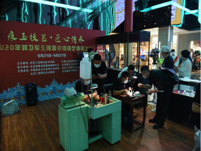 為響應(yīng)政府號(hào)召,推動(dòng)文化惠民,讓老街坊們近距離感受博大精深的“京作”宮廷藝術(shù),提升人民群眾文化品位,開拓文化視野,堅(jiān)定文化自,助力石景山區(qū)文明創(chuàng)城和公共文化服務(wù)體系示范區(qū)建設(shè),服務(wù)2022年北京冬奧會(huì),我校于2020年9月21日,在北京喜隆多新國(guó)際購(gòu)物中心舉辦了:匠心創(chuàng)造未來 ——2020郭衛(wèi)軍“痕玉技藝匠心傳承”文化體驗(yàn)之旅活動(dòng)。校黨委副書記魏曉東出席了本次活動(dòng),并為活動(dòng)揭幕。