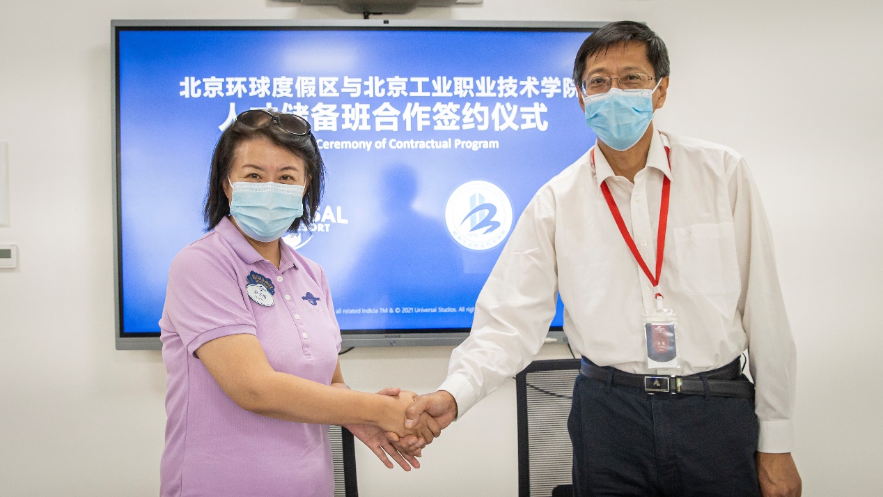 為推動我校“雙高”項目進程,落實“智慧文旅產教學院”建設任務,提升人才培養質量,2021年8月27日,我校與北京國際度假區有限公司主題公園和度假區管理分公司(以下簡稱北京環球度假區)簽訂了“校企合作定向培養協議”,正式啟動了共同培養“北京環球度假區人才儲備班”的新征程。