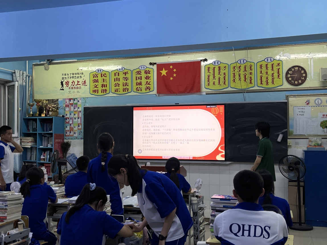 共誦一首詩。實踐團成員帶領學生共同朗誦現代詩《什么是年》,通過朗讀作品讓學生們感悟詩中所飽含的作者對家鄉、對親人的深深眷戀之情,增強學生對中華傳統節日春節的認知,鑄牢中華民族共同體意識。