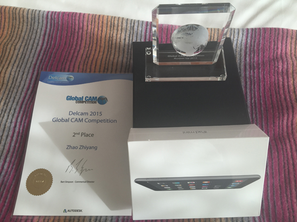 趙志揚(yáng)同學(xué)在2014年全國(guó)職業(yè)院校技能大賽“三維建模數(shù)字化設(shè)計(jì)與制造”比賽中取得一等獎(jiǎng)第一名的好成績(jī),因此獲得參加第三屆“Delcam杯”全球CAM軟件技能大賽的選拔機(jī)會(huì)。通過(guò)國(guó)內(nèi)層層選拔,趙志揚(yáng)同學(xué)力克群雄,作為唯一選手代表中國(guó)赴英參賽。