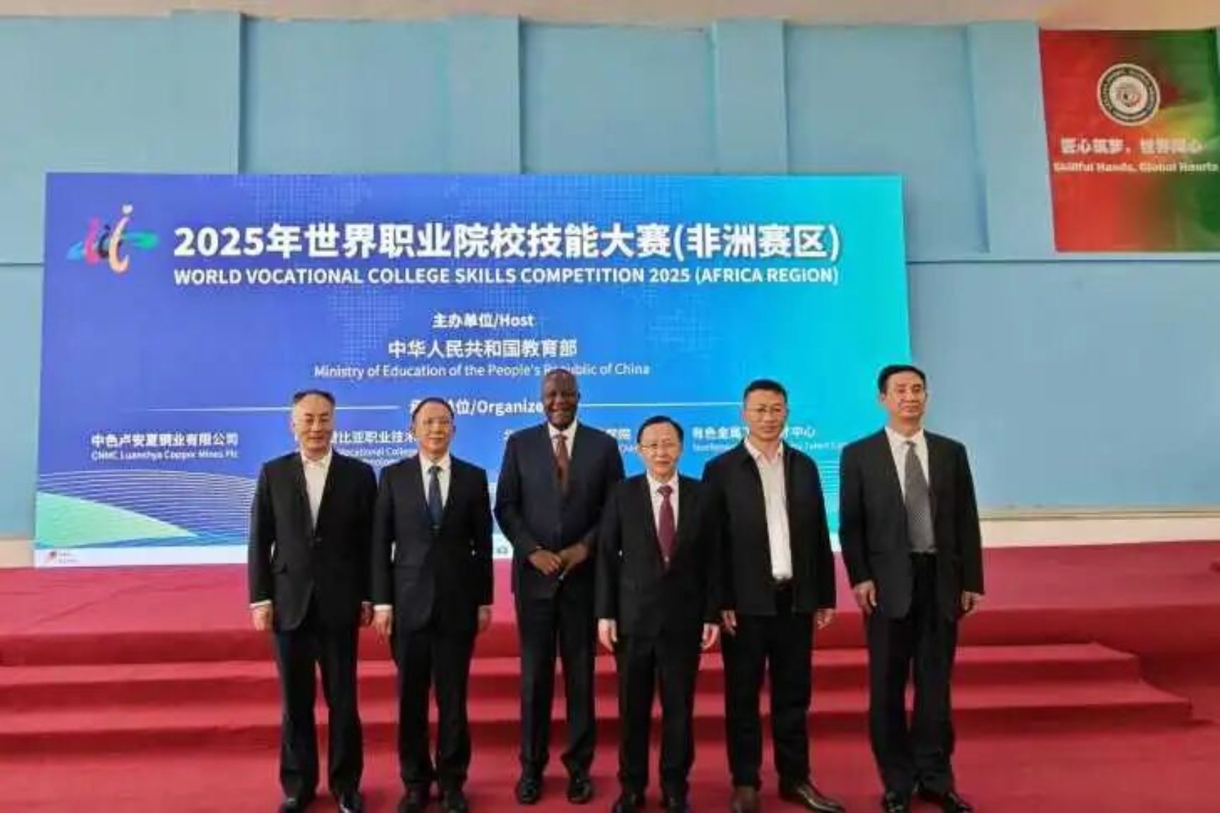 2025年9月5日上午,由中國有色礦業(yè)集團(tuán)有限公司與有色金屬工業(yè)人才中心協(xié)辦,中國-贊比亞職業(yè)技術(shù)學(xué)院、北京工業(yè)職業(yè)技術(shù)學(xué)院及中色盧安夏銅業(yè)有限公司共同承辦的2025年世界職業(yè)院校技能大賽非洲賽區(qū)比賽在贊比亞盧安夏地區(qū)中國-贊比亞職業(yè)技術(shù)學(xué)院正式開幕。大賽旨在為非洲青年搭建“技能成才”通道,增強(qiáng)非洲職業(yè)教育內(nèi)生動(dòng)力與區(qū)域輻射力,深化中非職教合作,推進(jìn)校企協(xié)同發(fā)展。我校派出苗耀華、王俊、高慧三位裁判赴贊比亞承擔(dān)大賽相關(guān)工作。