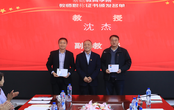 隨后,頒授新一聘期的教師職稱證書,聘任儀式上為新晉升教授、副教授、講師的共38名教師頒發聘書。學院學生向即將退休的老教師獻上鮮花,表達學生對老師深深的敬意。