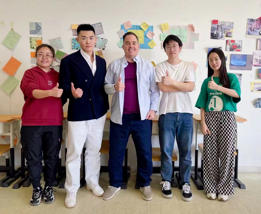 北京市口語大賽指導教師和學生合影(王志麗、侯明軒、Peter、鄭晨、于天嬌)