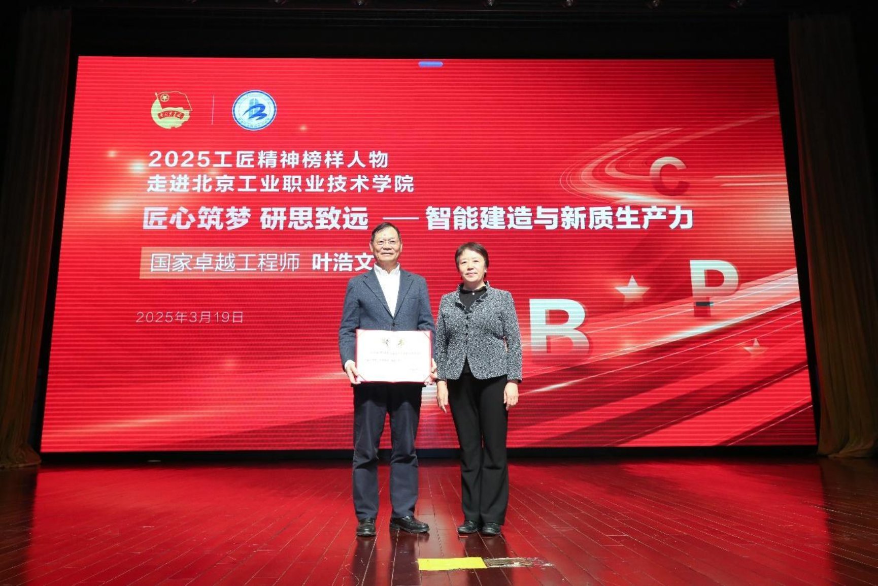 3月19日,北工院組織“兩會歸來話兩會”專題講座暨2025年“工匠精神榜樣人物進校園”第一期活動。國家卓越工程師、中國建筑集團有限公司首席專家葉浩文應邀來校作專題報告,為師生深入解讀全國兩會精神,并就學校建筑及智能建造等專業如何迭代升級,精準對接首都發展需求“把脈問診”。葉浩文圍繞“新質生產力”“城市更新”“鄉村振興”“綠色轉型”等10個關鍵詞為師生解讀2025年全國兩會精神。聚焦“智能建造”“綠色建筑”等前沿領域,通過詳實的數據和生動的工程案例,系統闡釋了當前建筑行業轉型升級對專業建設調整提出的新要求。講座中,他結合自身經歷為學校師生講述了踐行工匠精神并以卓越成就回饋社會的故事。