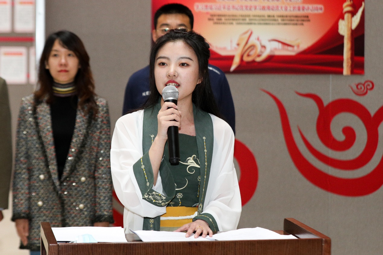 接著,學生讀者李欣悅同學作為代表,宣讀了《4·23閱讀活動倡議書》,倡導全民閱讀、共建書香校園,傳播弘揚中國特色社會主義文化,培育踐行社會主義核心價值觀,號召大家積極行動起來,讓閱讀點亮夢想,讓閱讀成就未來。接著和其他學生一同帶來沉浸式情景劇表演《戰火中的大學生》。