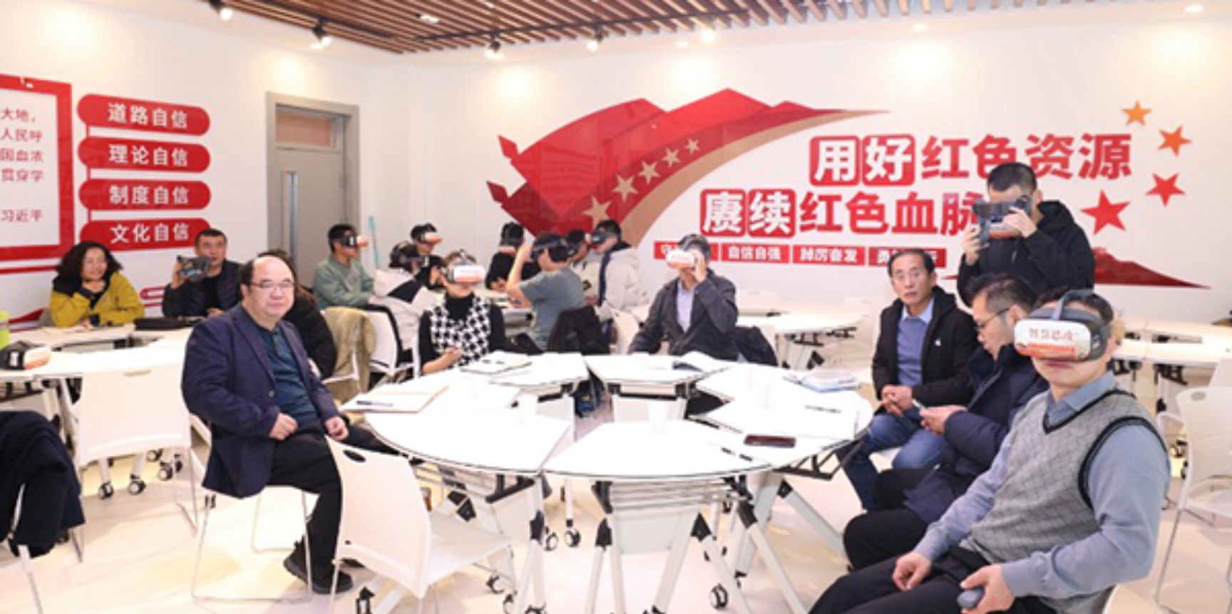 馬院思政課虛擬仿真體驗教學中心于今年11月底建設完成。該中心位于匠心樓七層,配備思政課專用VR眼鏡、思政智慧沙盤和500余節思政課虛擬仿真資源,能同時滿足一個標準班級上課體驗。思政課虛擬仿真體驗教學中心憑借數字化虛擬仿真技術和沉浸式思政體驗課程,讓學生在“視聽觸”的虛擬仿真環境中體驗中國共產黨百年輝煌歷程,發揮紅色資源在大學生思政課中的重要作用,打造“不同凡響”的思政課學習體驗,推動新時代思政課入耳入腦入心。