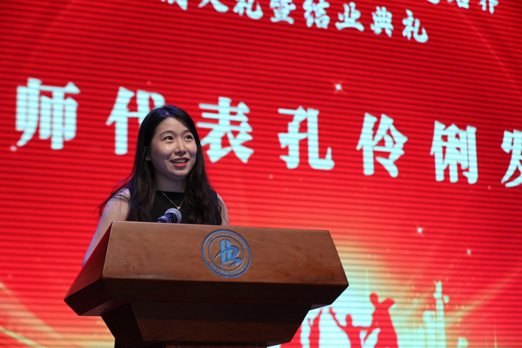 會上教師代表孔伶俐老師代表班主任和“我最喜愛的老師”發言,她為學生送上一份叮囑,一份期盼,一份祝福。囑托同學們升入二級學院后能夠繼續奮斗,讓青春的翅膀翱翔在生命的藍天;在這個過程中,你們可能會碰到困難,可能會沮喪迷茫、會對未來充滿焦慮,但只要找到了自己感興趣的方向,就一定能步入人生的新航道;期盼同學們無論未來升入哪個學院,畢業后從事什么行業,都要相信:只要有一分光,就能發一分熱,即使在沒有火炬的地方,也能點燃一只螢火,照亮一段前路,溫暖數顆人心。祝福同學們身處順境,乘風破浪不狂妄;身處逆境,積淀力量不自傷。孔老師最后祝福同學們前程似錦,繁華過盡無風霜;余生順意,自在如風任徜徉!