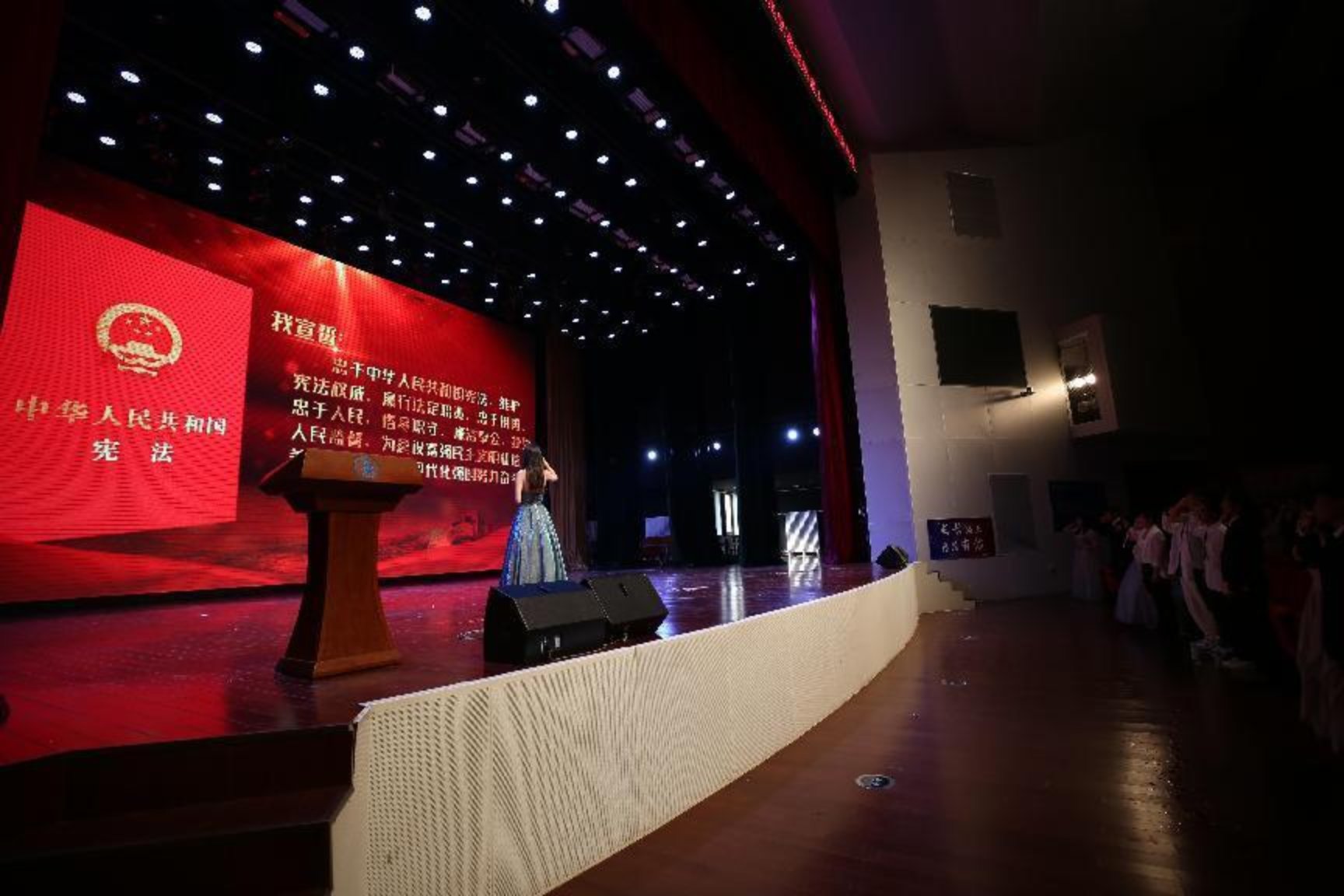 隨后舉行憲法宣誓環節。家長和學生閱讀《給彼此的一封信》。2021級貫通學生代表2105班鄭榮涵代表貫通學生發言。2022級貫通學生代表節目:舞蹈《新寶島》;貫通2105班選送節目:朗誦《與吉春有關的日子》;貫通2103班選送相聲《談設夢想》;2104班選送節目:獨唱《Hey kong》《海闊天空》;2021級貫通培養“學習之星”頒獎活動,貫通2109選送節目:獨唱《再見深海》;貫通2107選送節圖:合喝《晴天》;基礎教育學院團總支學生會節目:《青春紀念曲串燒》。