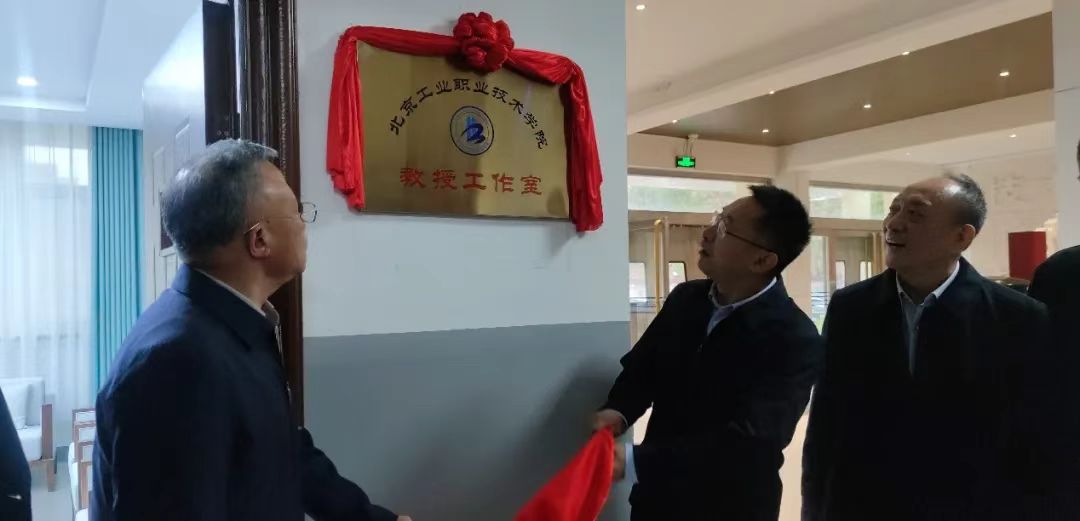 座談會后,柳長安、魏曉東與楊鴻斌、彭慧軍共同為“北京工業職業技術學院教授工作室”揭牌,并參觀了各專業實訓基地。“教授工作室”的掛牌,讓兩校的對口合作工作有了更精準的著力點、結合點、切入點。