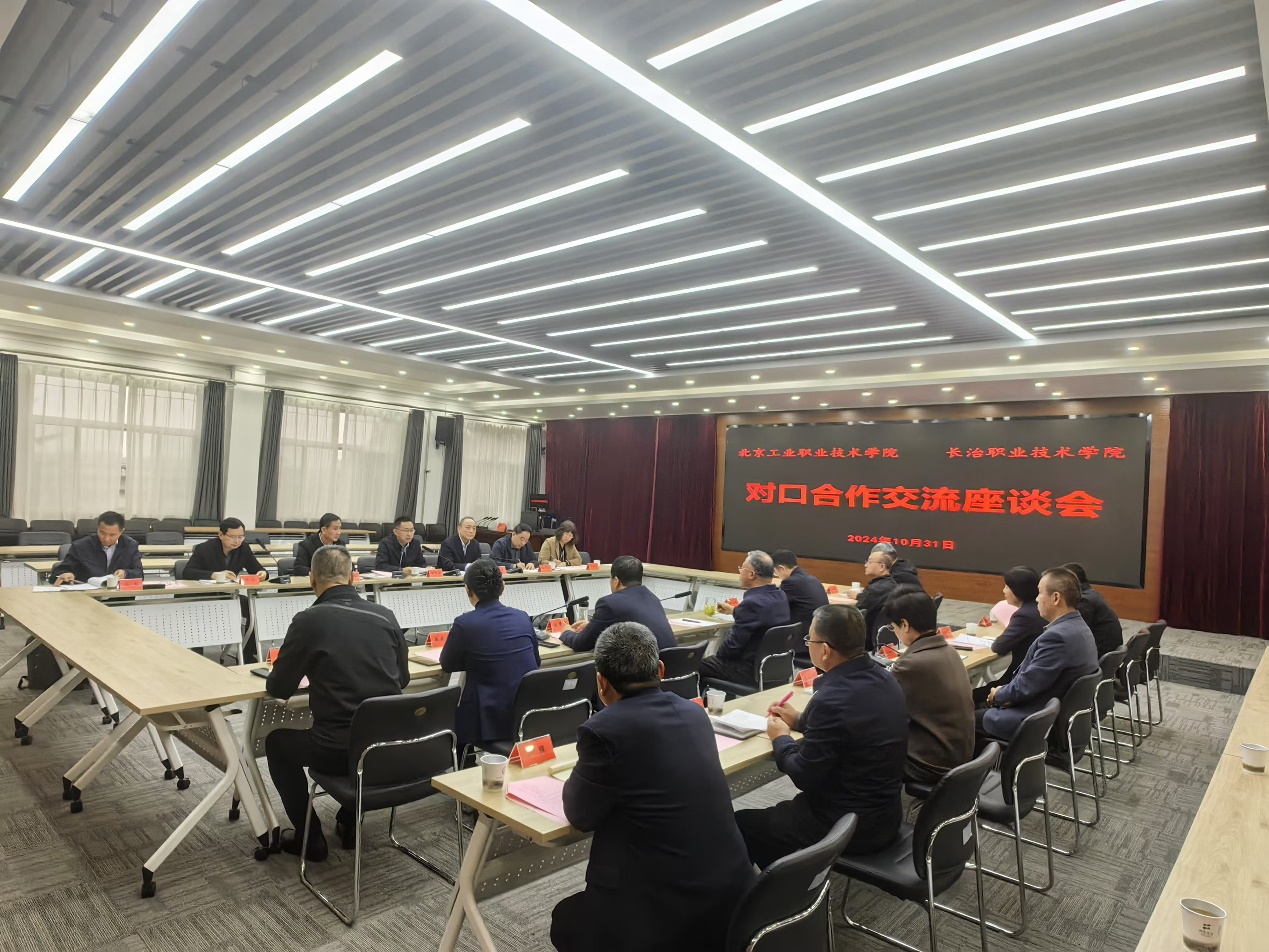 31日下午,柳長安一行到訪長治職業技術學院,與長治職業技術學院黨委書記楊鴻斌、副院長彭慧軍及相關部門負責人進行座談。楊鴻斌介紹了長治市及學院的基本情況,柳長安總結回顧了北京工業職業技術學院、長治職業技術學院對口合作一周年工作進展。他表示雙方彼此賦能、雙向奔赴的對口合作機制已經建立,對口合作交流結出碩果。雙方今后的合作要共同做好合作規劃、找好合作抓手,要出成果、出亮點、出模式。魏曉東簡要介紹了學校發展規劃,從“北京離不開、全國有影響、國際走出去”三個維度介紹了學校經驗、做法。我校相關職能部門負責人分別結合各自負責領域的工作進行了經驗分享。